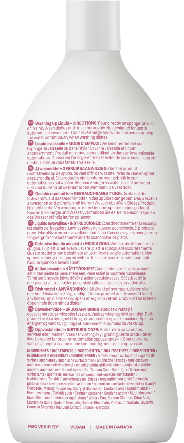 To sredstvo za pomivanje posode je brez dišav, hipoalergeno in popolnoma biorazgradljivo. Zelo primeren je za temeljito čiščenje dud, stekleničk, žličk in krožnikov.