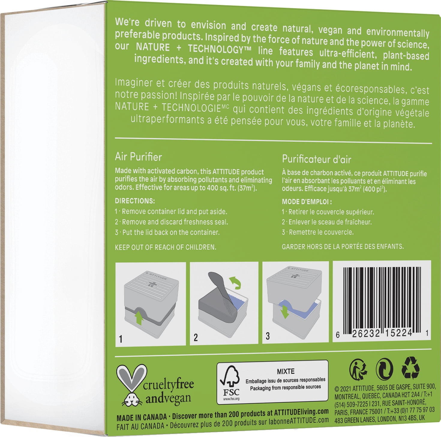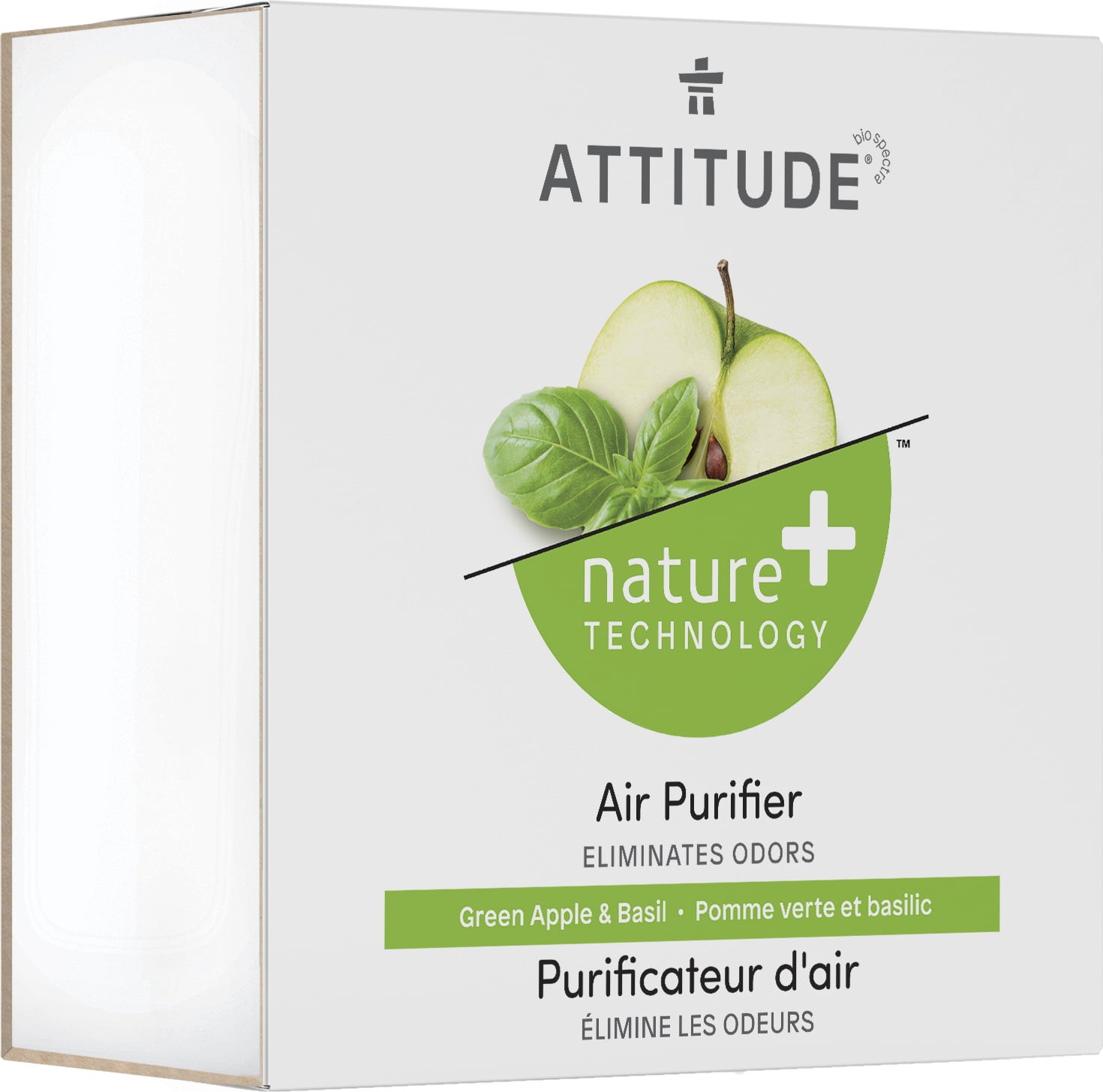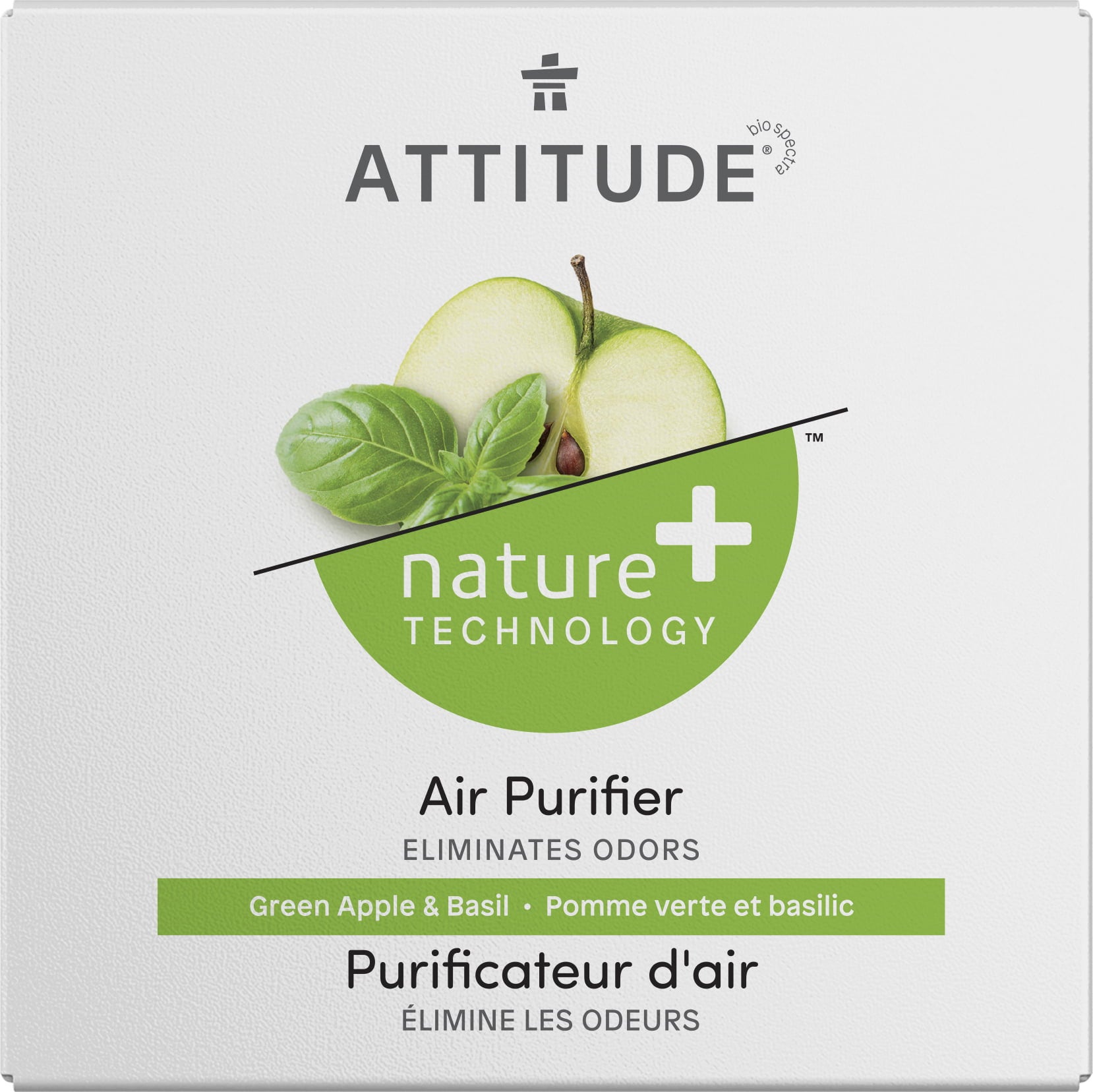 Osvežilec zraka ATTITUDE uporablja aktivno oglje za filtriranje onesnaževalcev iz zraka in sprošča naravni vonj jabolk in bazilike.