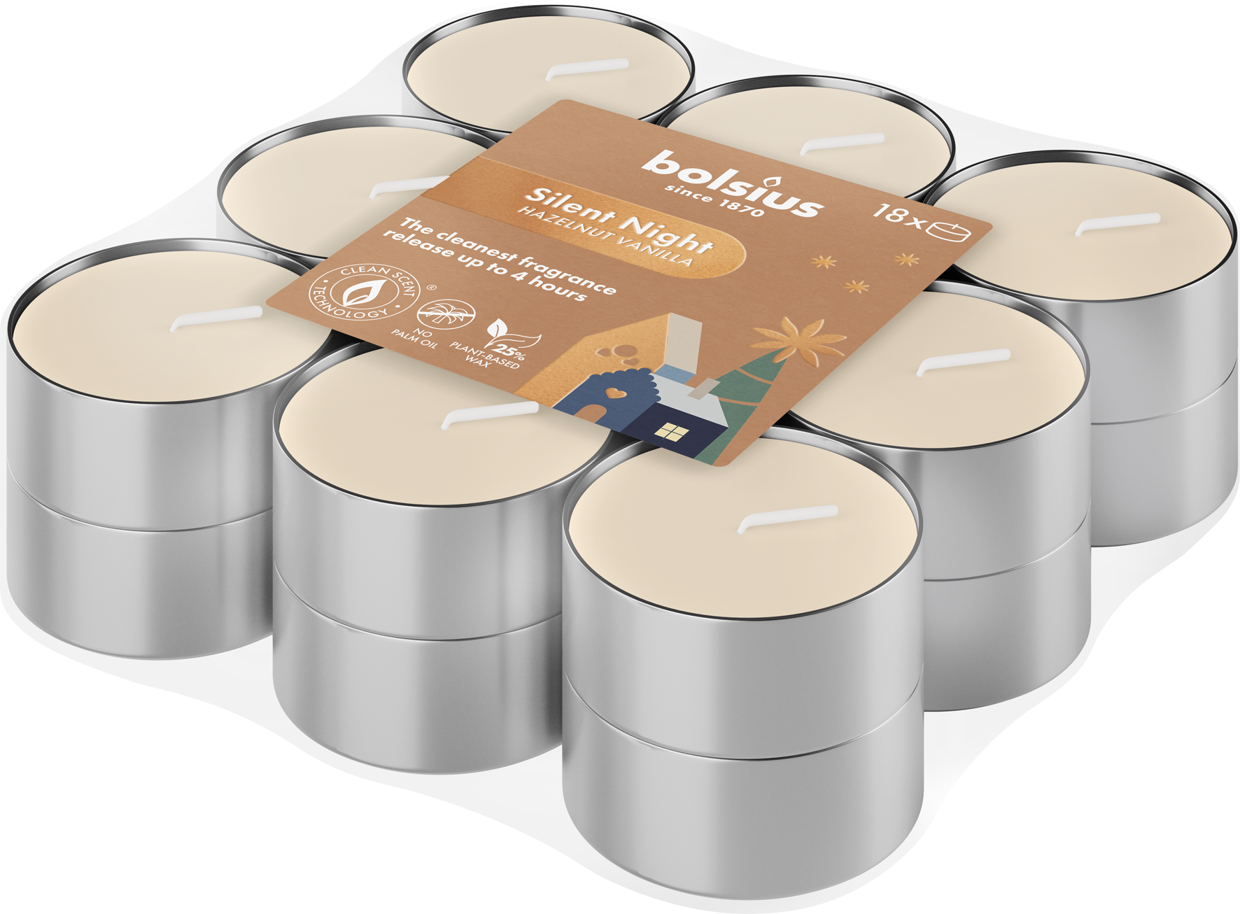 bolsius True Glow dišeče čajne svečke "Silent Night", čajne svečke 4h / 18 kos.