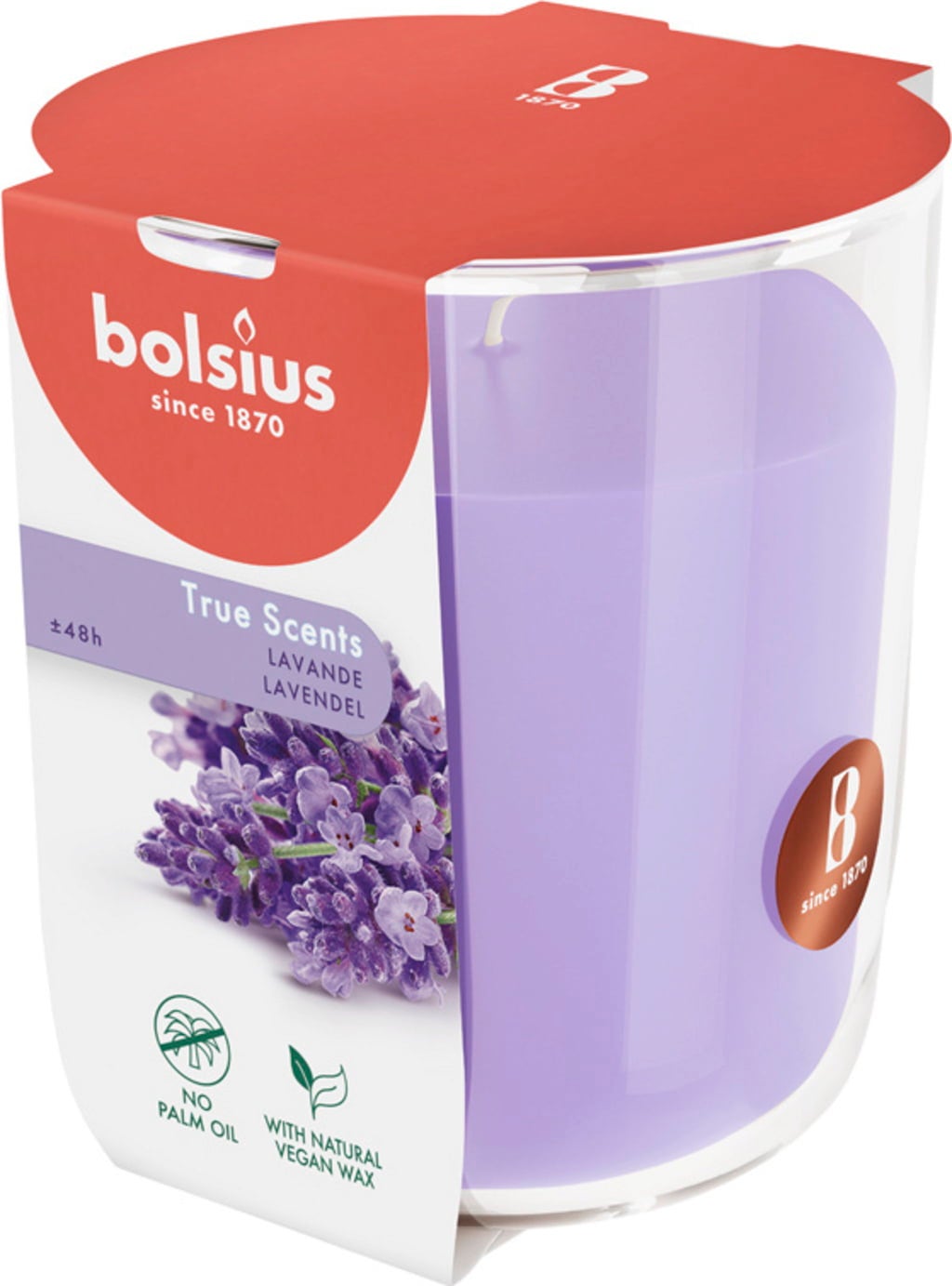 True Scents dišeča sveča v steklenem kozarcu znamke Bolsius zagotavlja optimalno porazdelitev dišave v vaših bivalnih prostorih do 45 ur. Zahvaljujoč tehnologiji Freshplex™ pomaga celo nevtralizirati tobačni dim. Sveča je delno izdelana iz rastlinskega voska in ne vsebuje palmovega olja.