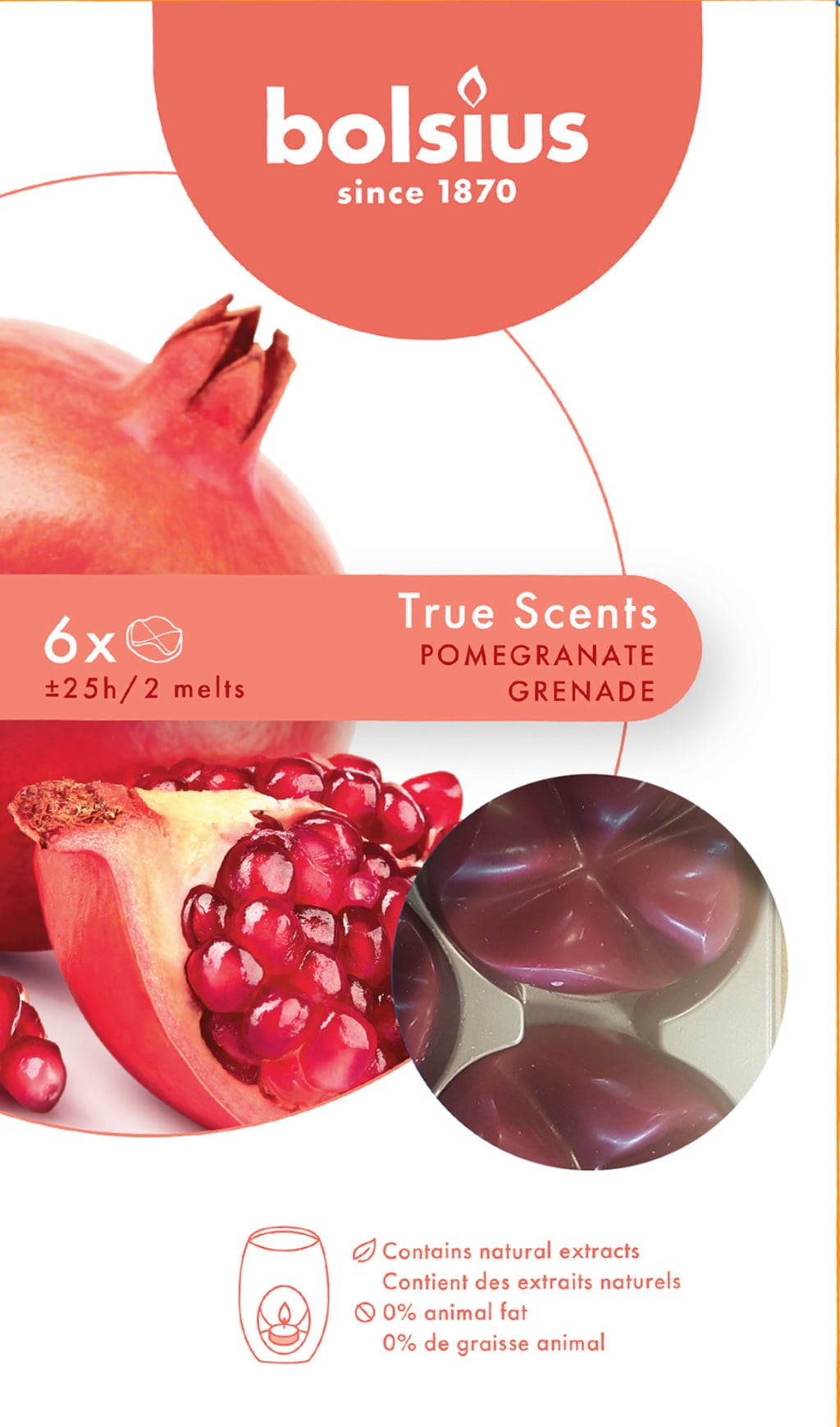 bolsius True Scents Waxmelt, 6 kosov, granatno jabolko