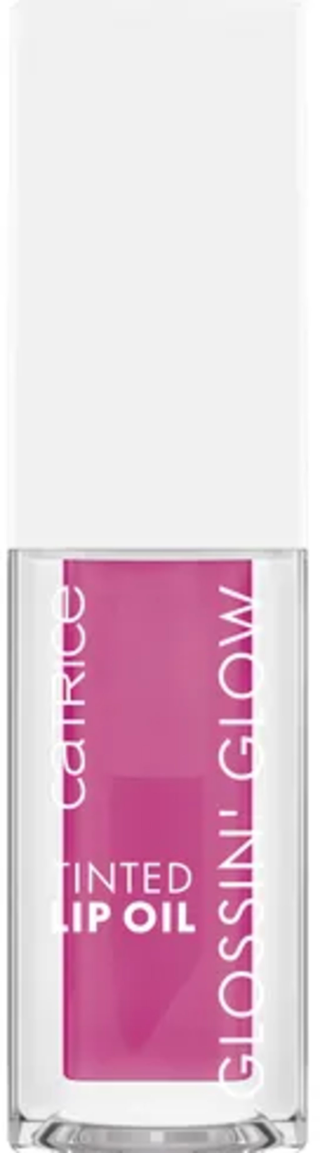 Glossin' Glow Tinted Lip Oil znamke Catrice je olje za ustnice, ki združuje učinek sijaja ustnic in negovalne lastnosti balzama za ustnice. Formula brez mikroplastike vsebuje olje češnje in granatnega jabolka, ki poskrbita za intenzivno nego. Tekstura olja za ustnice se odziva na naravno pH vrednost ustnic in tako ustvari individualen barvni ton.