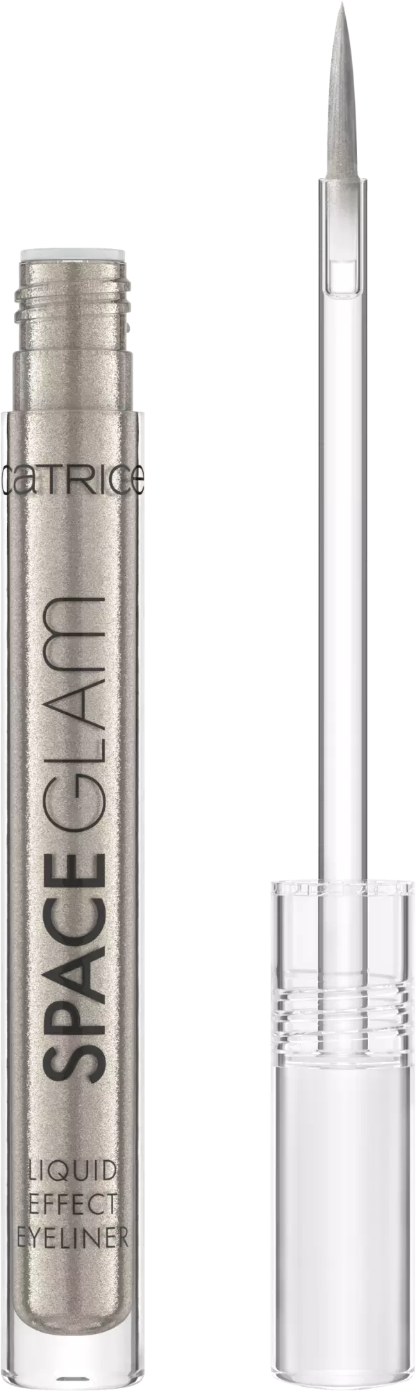 Space Glam Liquid Chrome Eyeshadow znamke Catrice je tekoče senčilo za igriv, vesoljski videz. Veganska, lesketajoča se tekstura združuje pigmente, ki spreminjajo barvo, in ultra-odsevne pigmente. Barva se obdrži na veki še posebej dolgo in naredi vaš make-up videz prav posebno mojstrovino.