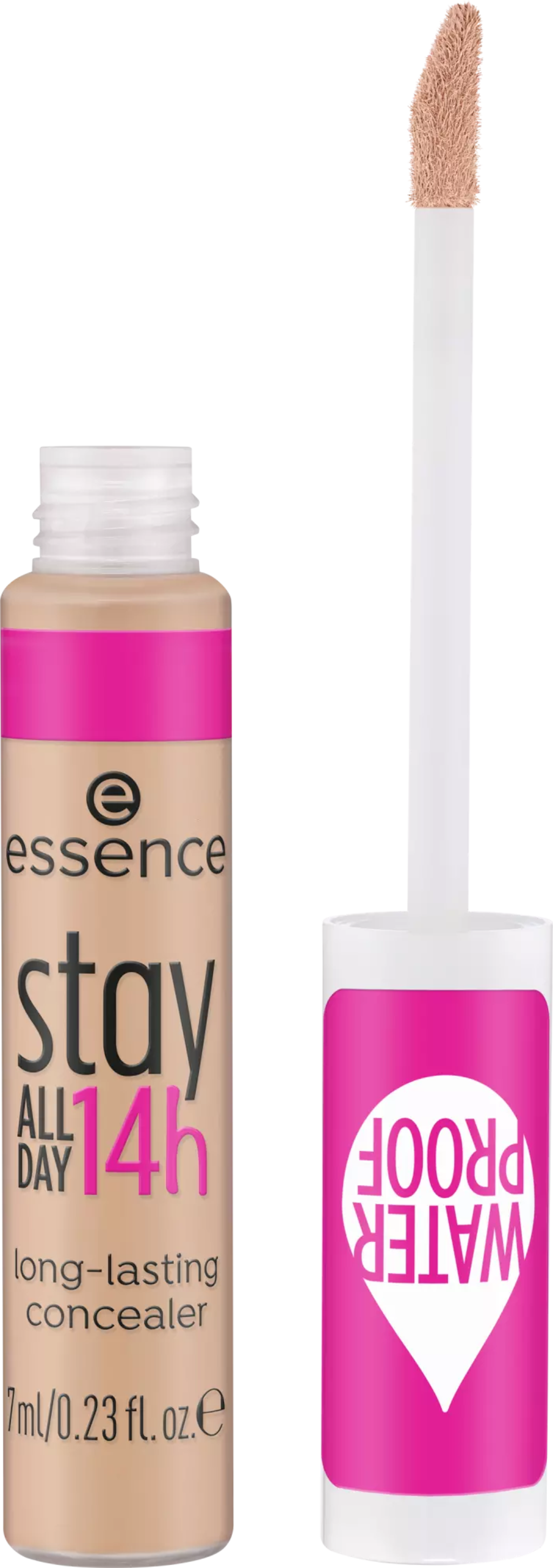 stay ALL DAY 14h long-lasting concealer znamke essence je vodoodporen in dolgo obstojen korektor, ki spretno prekrije nepravilnosti, rdečico in podočnjake. Ponuja srednje do visoko prekrivnost - odvisno od vaših potreb in števila nanosov. Brez skrbi, ne usede se v drobne gube in tudi ne izsuši kože. Njegova veganska formula je brez silikonov, mikroplastike in parabenov.
