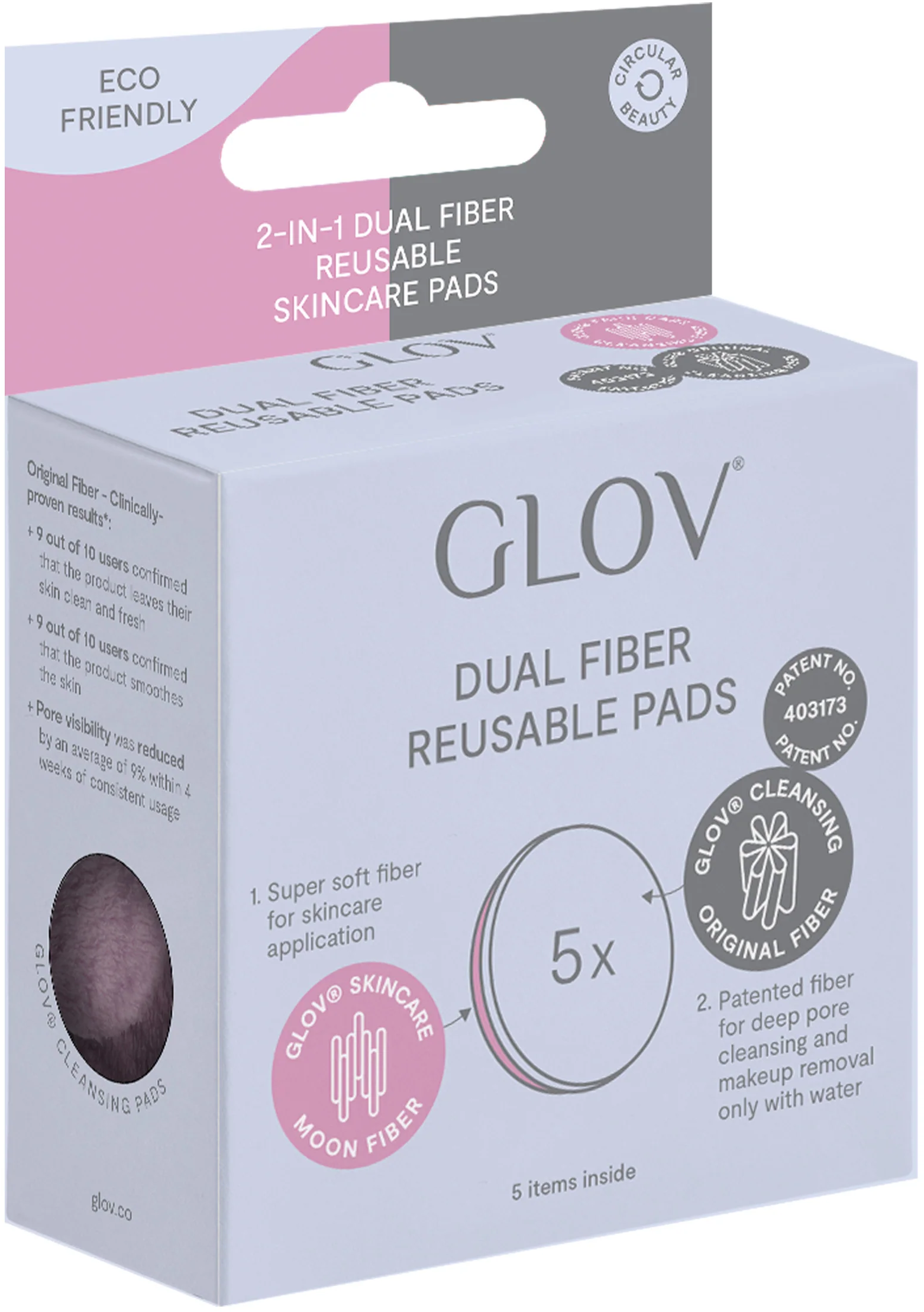 GLOV 2-In-1 Dual Fiber Reusable Skincare Pads, Pink (5 kos.)