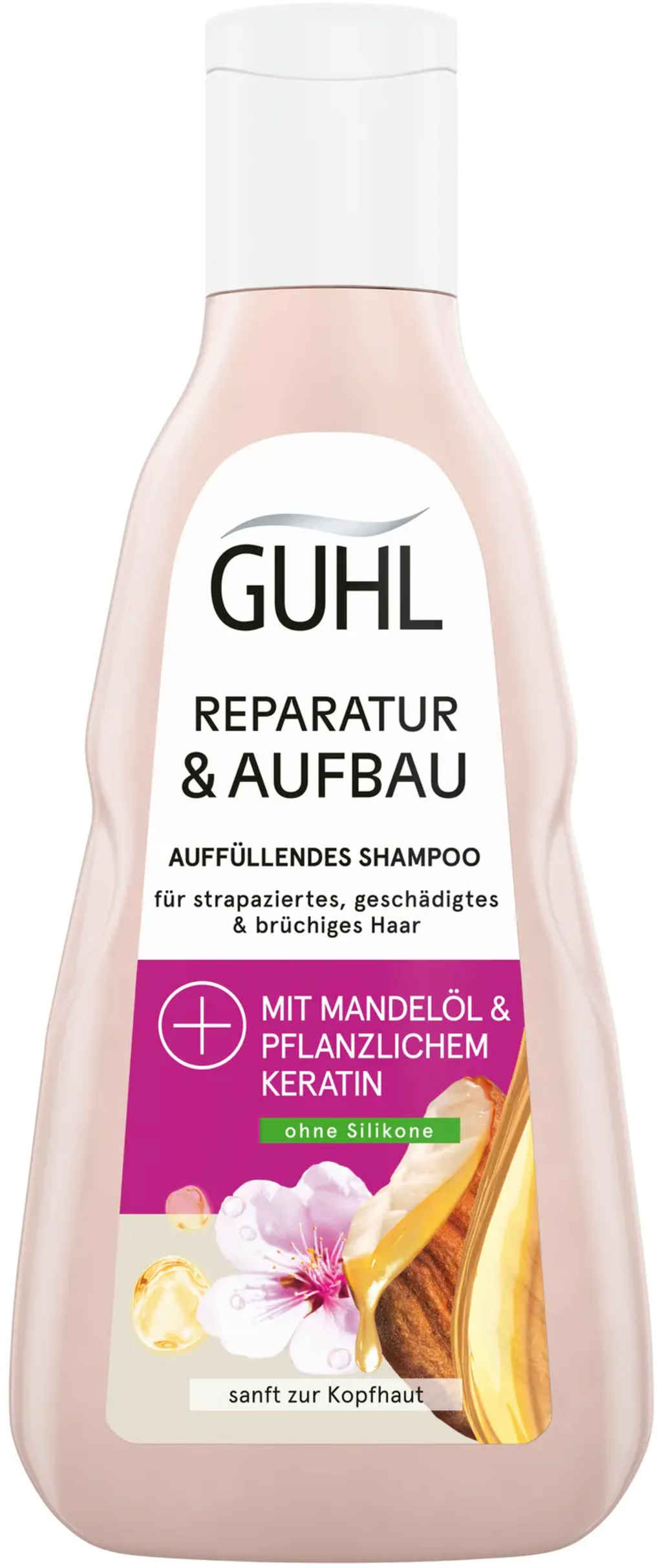 Šampon za regeneracijo in obnovo las znamke GUHL vsebuje dragocene naravne sestavine in je idealen za čiščenje obremenjenih in poškodovanih las. Med umivanjem nežno odstranjuje umazanijo z las in jih neguje od korenin do konic.