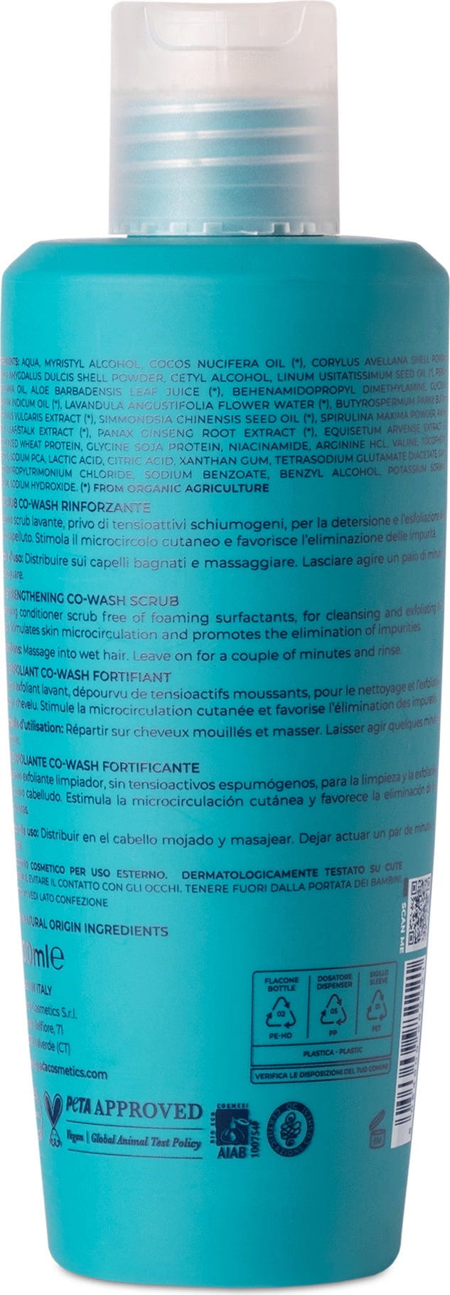 Co-wash ustvari piling učinek z naravnimi in rastlinskim mikrogranulatom iz lešnikov in mandljev. Medtem izdelek očisti kožo in narastek popolnoma brez penečih tenzidov. Piling spodbudi mikrocirkulacijo lasišča in ob redni uporabi nežno očisti lase ter lasišče.