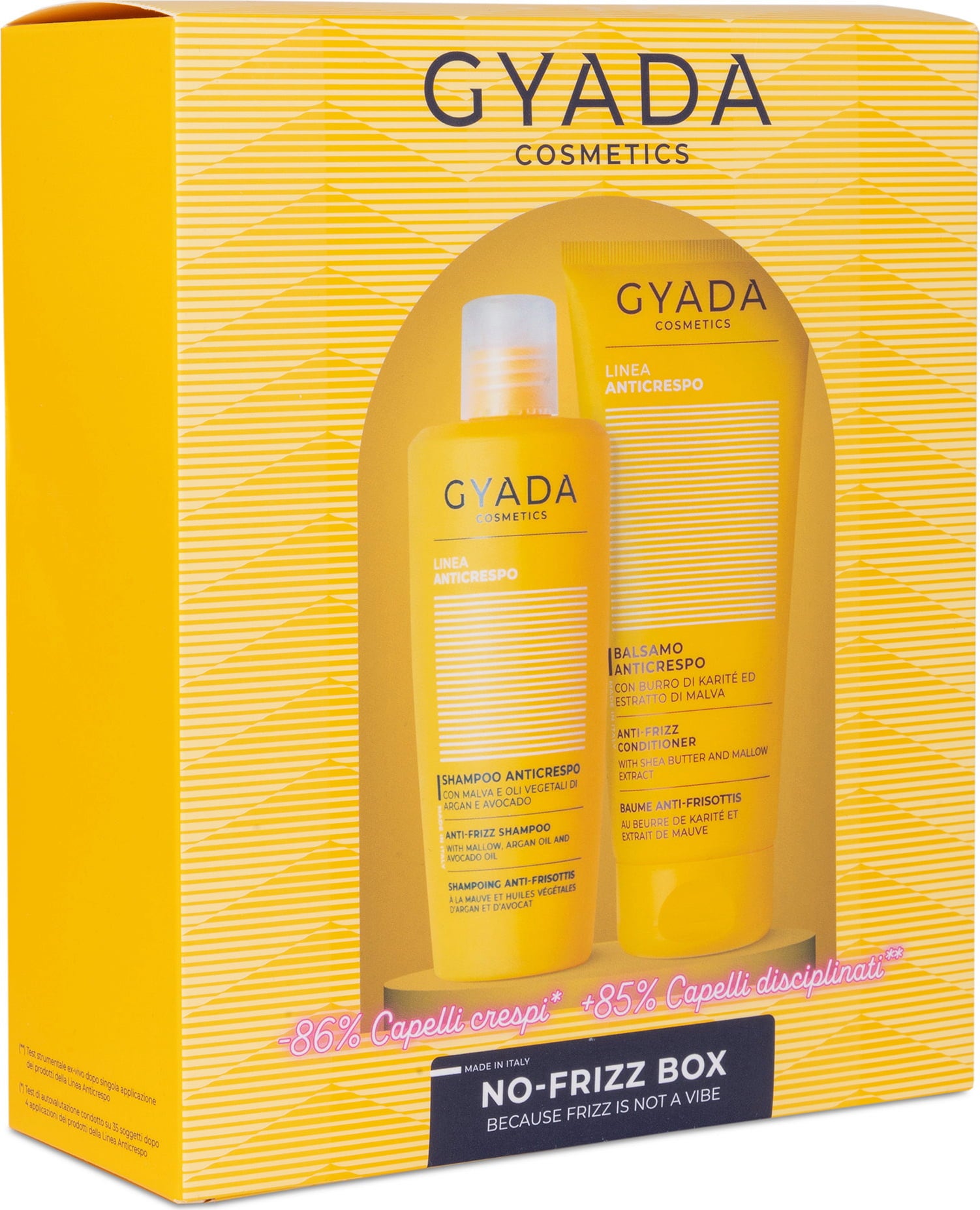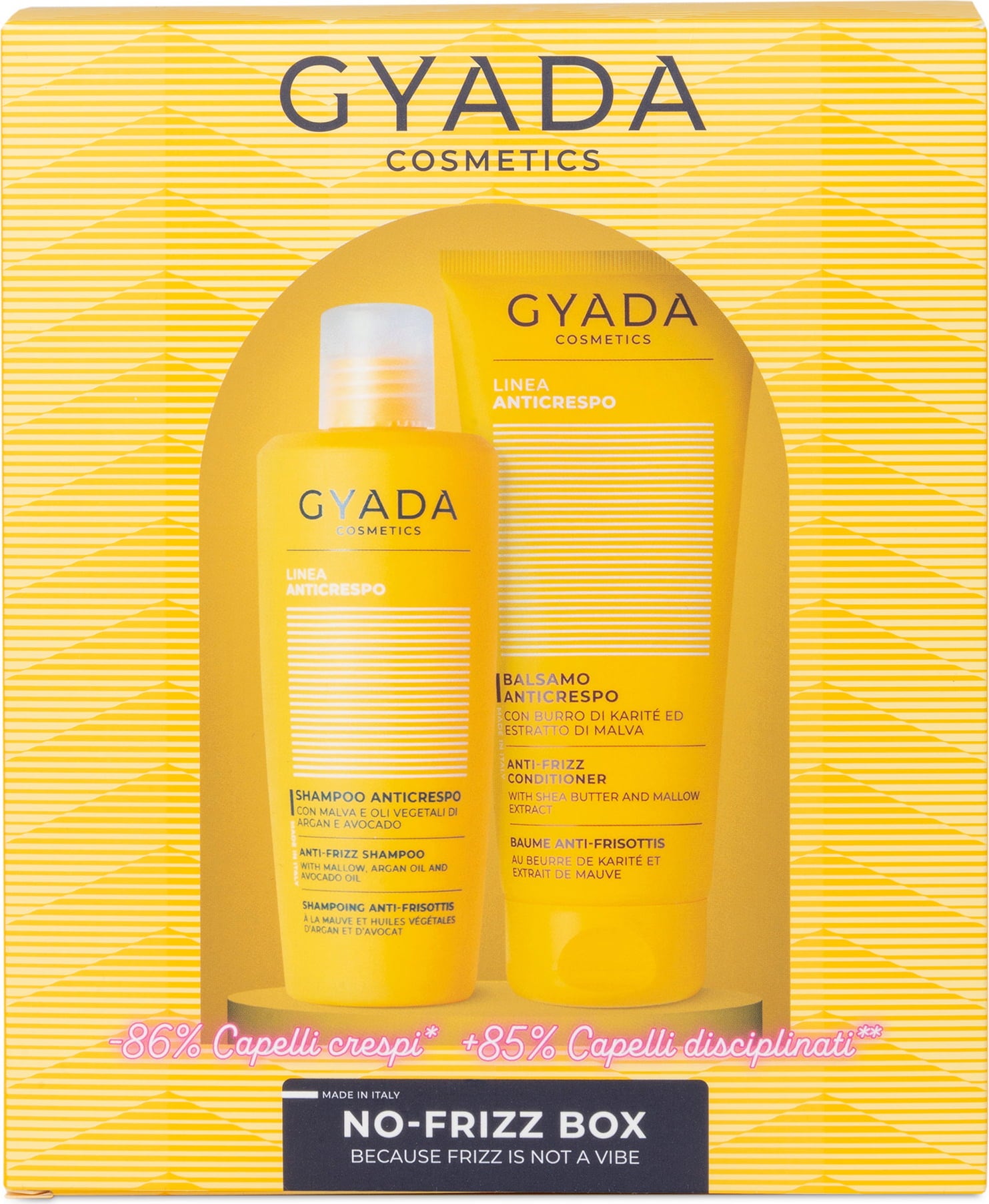 Ekskluzivna škatla No-Frizz Box, pripravljena za darila, vsebuje dvojec za nego las za suhe, poškodovane in h kodranju nagnjene lase. Sestavljena iz šampona in balzama, obogatenega s karitejevim maslom, izvlečkom sleza ter arganovim in avokadovim oljem, nežno očisti lasišče, razplete lase, jih nahrani in jim doda sijaj.