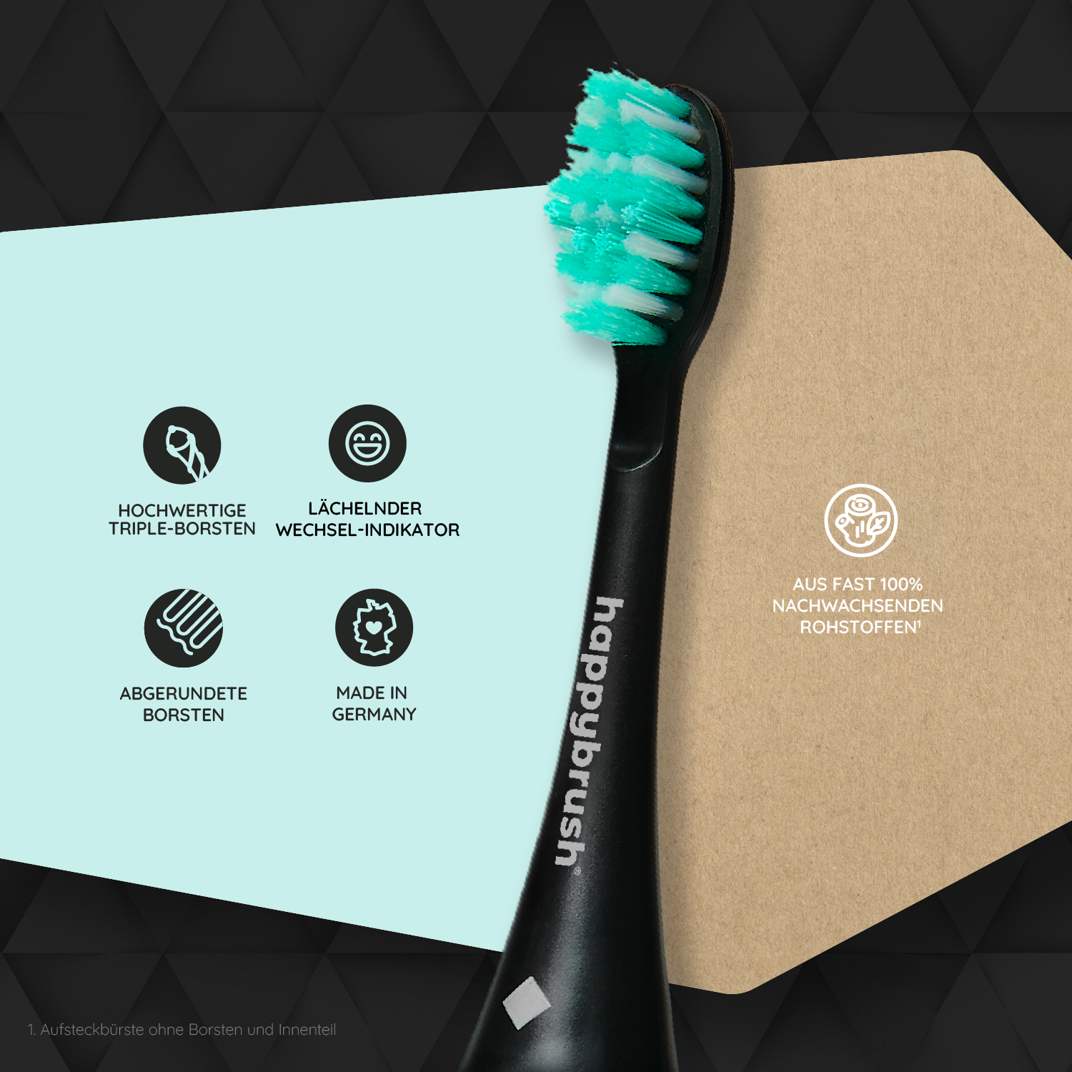 happybrush ECO VIBE 3 nadomestne glave za sonično zobno ščetko črna / mint