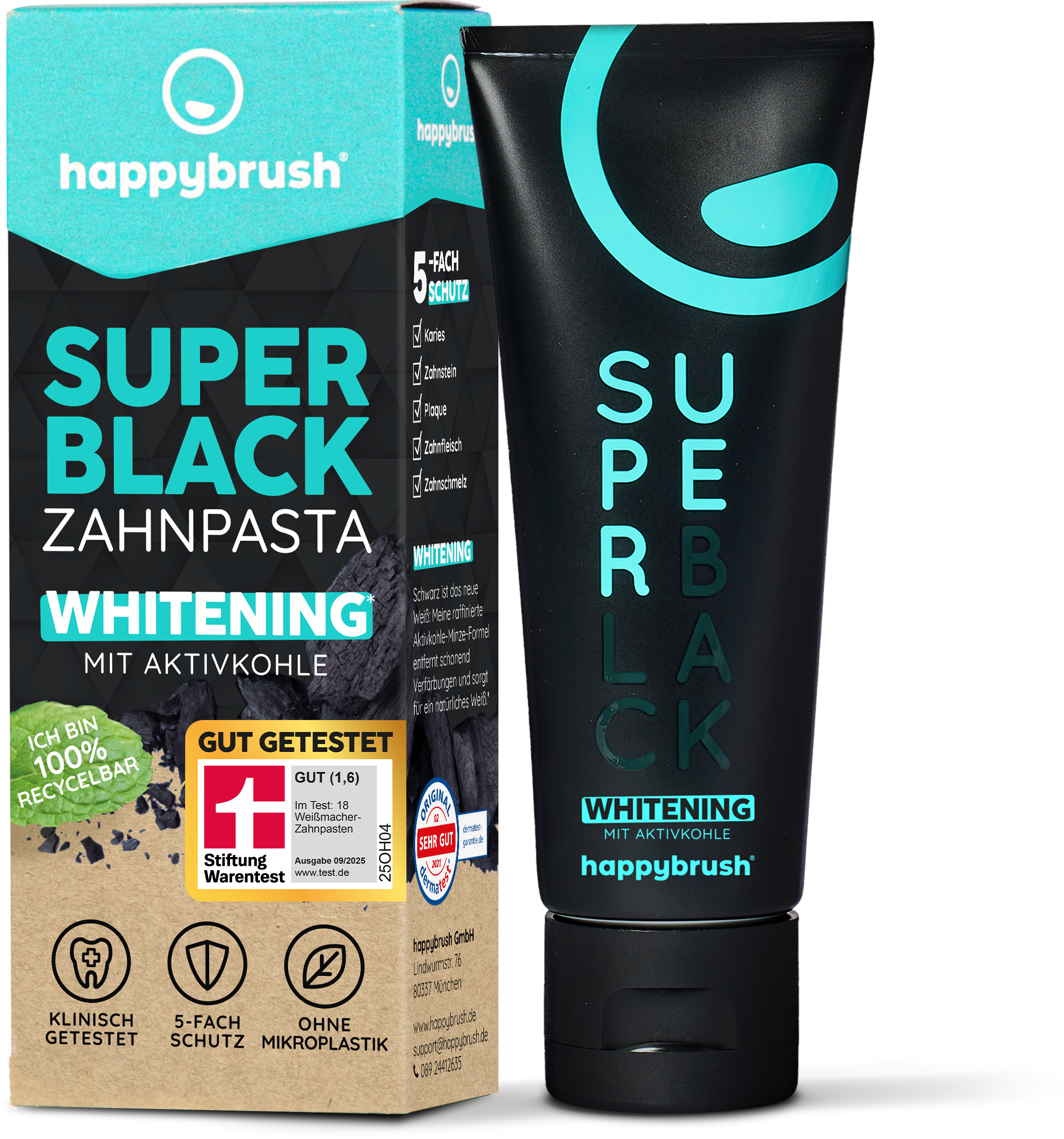 Izkušnenj v jeziku slovenščina za izdelek happybrush SuperBlack zobna pasta