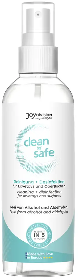 Ne glede na to, ali po igri ali med pripravo – z razkužilnim sprejem clean'n'safe lahko v enem samem koraku očistite in razkužite erotične igračke in gladke površine. Sprej, pripravljen za uporabo, ne vsebuje etanola, aldehidov in nanomaterialov, hkrati pa je negorljiv in ekonomičen za uporabo. Čistilna formula zanesljivo odstrani tudi trdovratne ostanke, kot so kri, maščoba in olje, ter zagotavlja higiensko svežino. Sprej je učinkovit proti širokemu spektru bakterij, glivic in nekaterih virusov ter je idealen za redno razkuževanje površin.