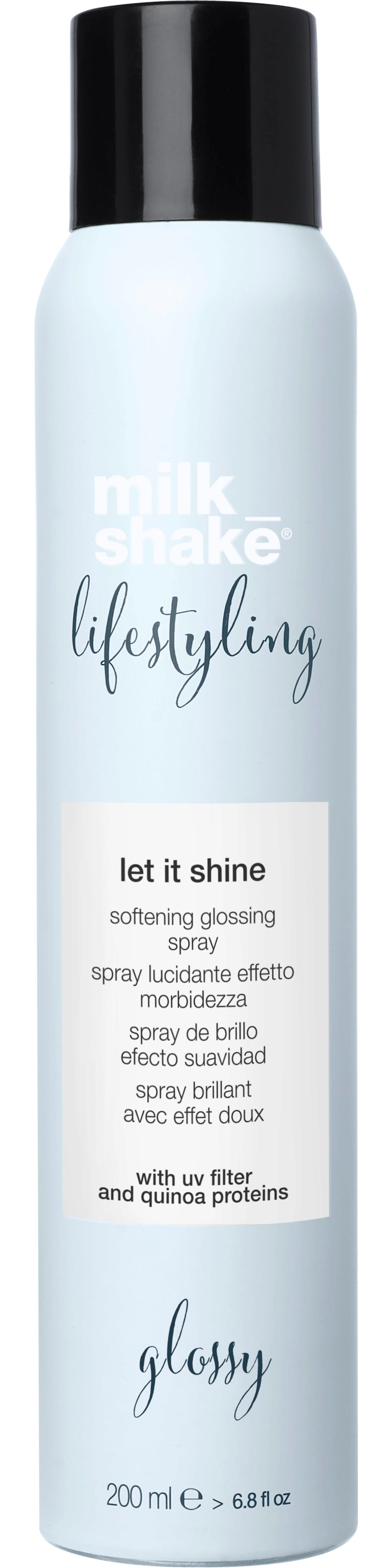Sprej za sijaj Lifestyling Let It Shine blagovne znamke milk_shake vašim lasem v trenutku zagotovi viden učinek sijaja - ne da bi jih obtežil. Izjemno lahka formula ublaži statično napetost, ustvari gladko površino ter poskrbi, da je barva las videti živahna in intenzivna. Že drobna meglica ustvari svilnat lesk in izboljša vsak videz. Uporabite ga po oblikovanju za sijoč zaključek, ki popolno zaokroži vašo pričesko.