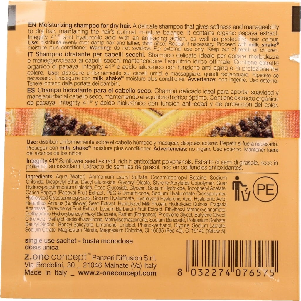 Moisture Plus šampon milk_shake je blag šampon, ki očisti in razvozla suhe lase. Hkrati pomaga ohranjati ravnovesje vlage v laseh in jih naredi mehkejše. Poleg tega organski izvleček papaje, Integrity 41® in hialuronska kislina zagotavljajo učinek proti staranju in ščitijo barvo las. Uživajte v občutku prožnosti.