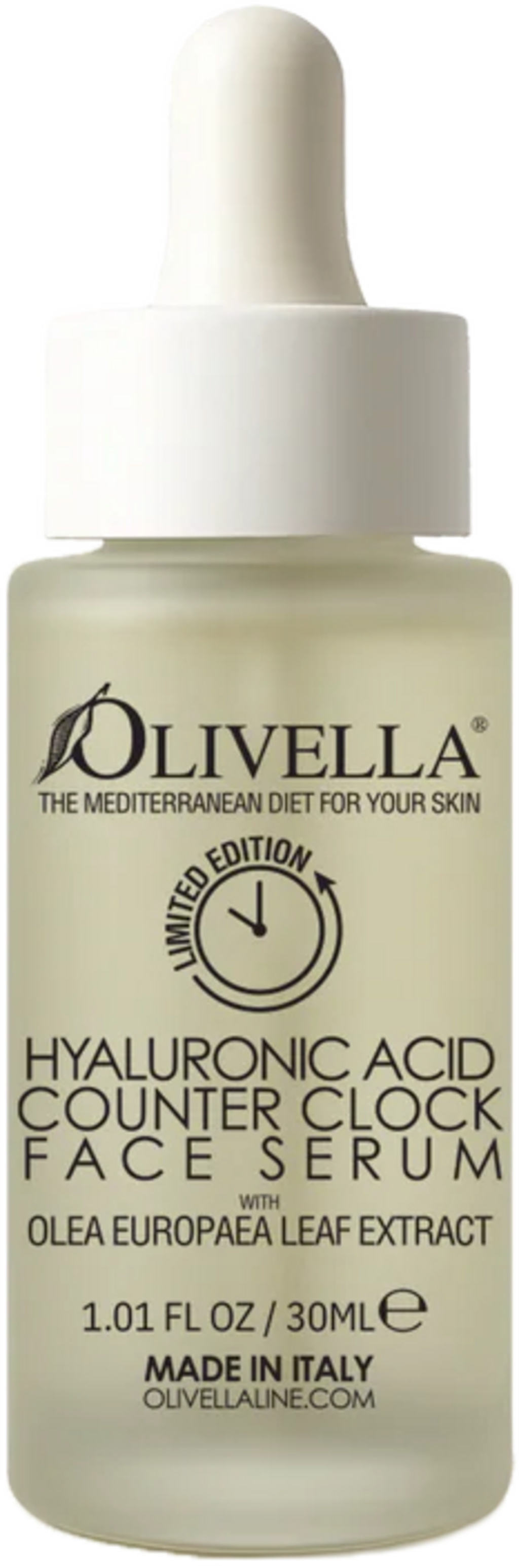 Ta serum za obraz proti staranju s hialuronsko kislino znamke Olivella razvaja kožo z bogastvom dragocenih sestavin. Kompleks petih vrst hialuronske kisline, izvlečki opuncije, kapre in oljčnih listov, biomimetični peptidi in niacinamid intenzivno negujejo kožo, tudi do globljih plasti. Podpira elastičnost in čvrstost kože, hkrati pa jo ščiti pred oksidativnim stresom. Idealen za občutljivo kožo.