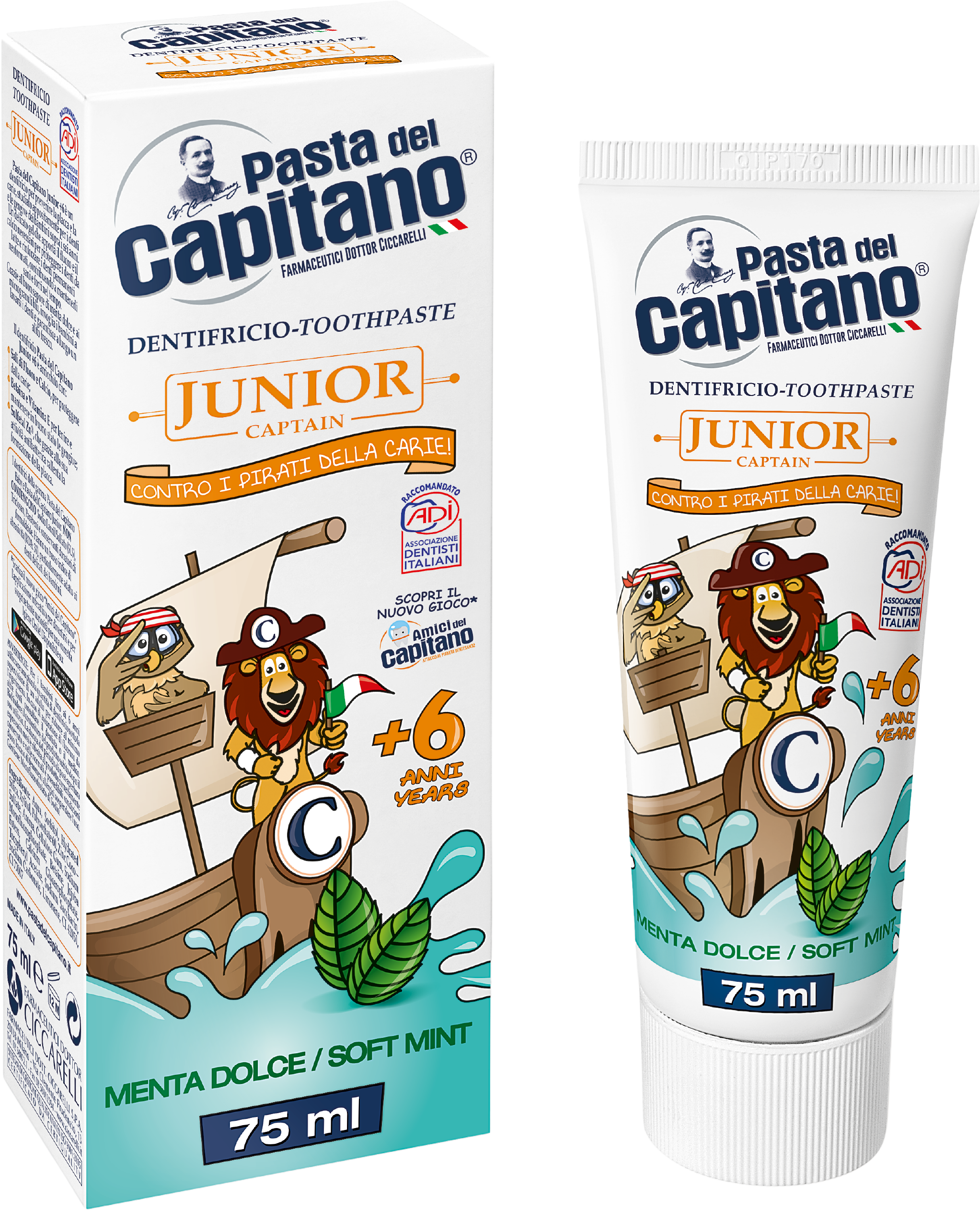 Pasta del Capitano Junior zobna pasta z blago meto, 75 ml