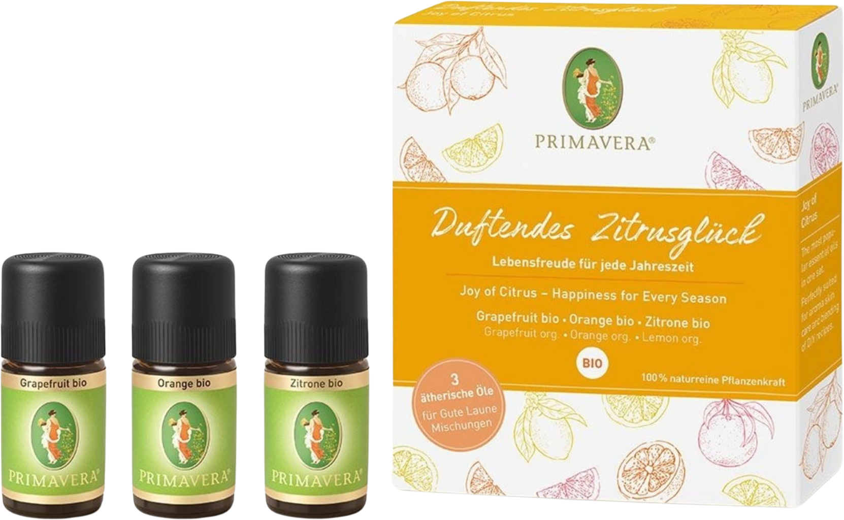 PRIMAVERA je v tem setu združila tri najbolj priljubljena eterična olja citrusov - idealno za domače mešanice.
