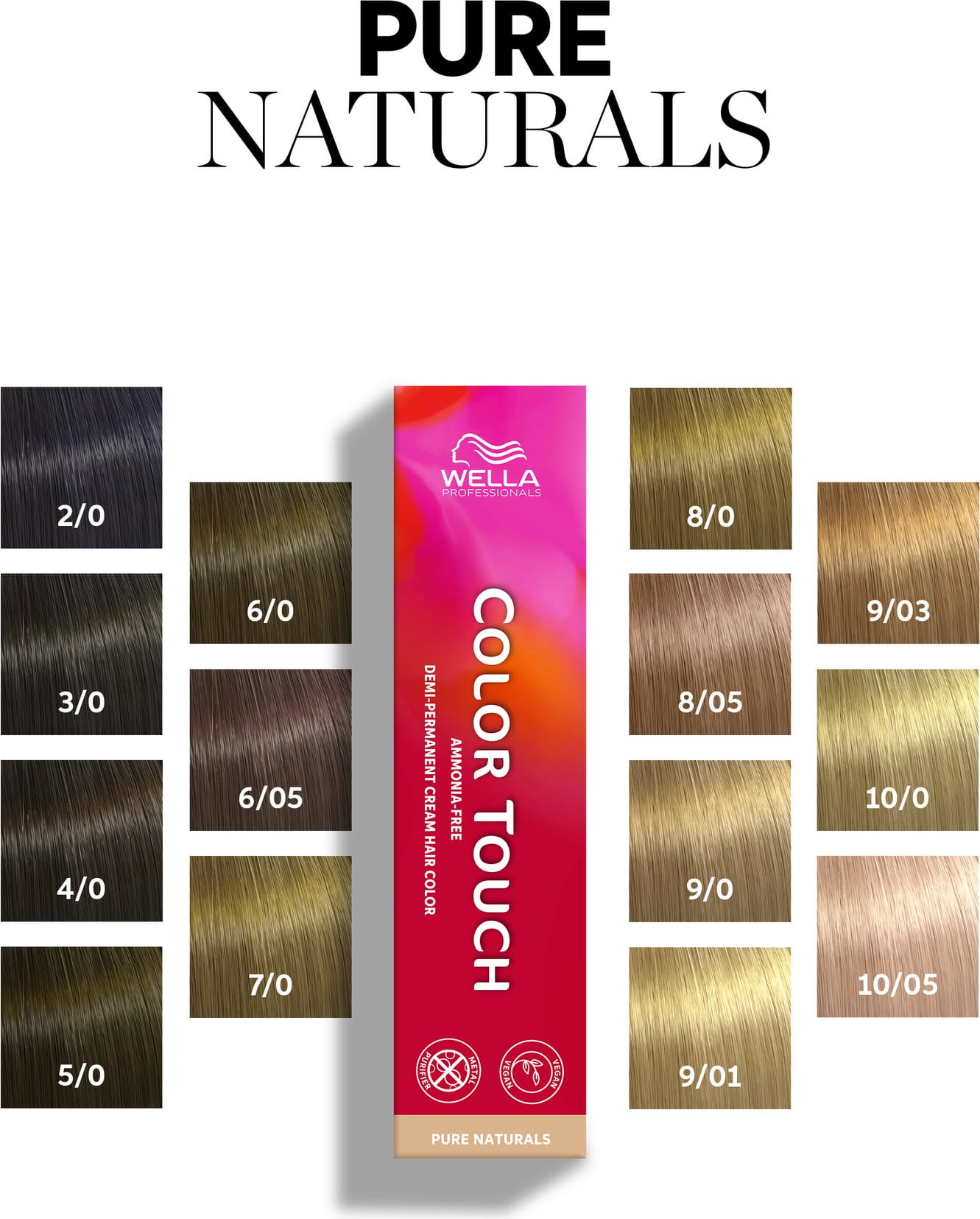 Ali že poznate Color Touch Pure Naturals z integrirano tehnologijo 'Metal Purifier Technology'? Profesionalni demi-permanentni intenzivni odtenki zagotavljajo fantastične barvne rezultate z odličnim sijajem. Naravne barve se obdržijo do 28 pranj las.