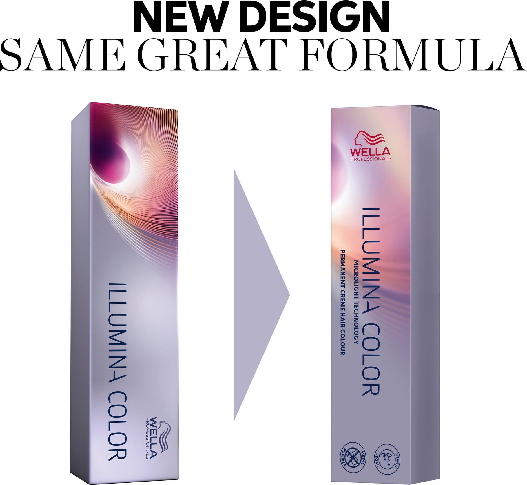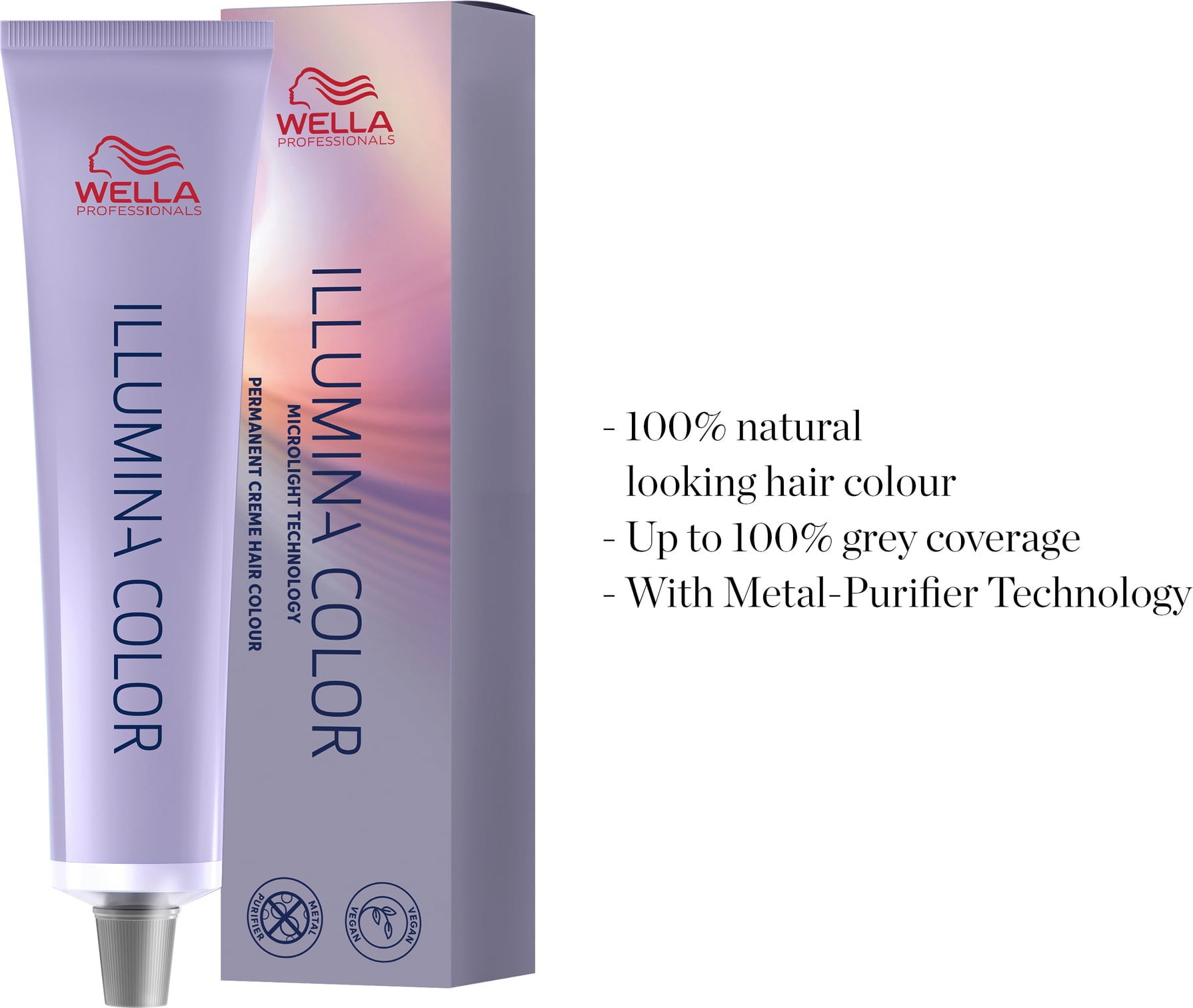 Ilumina Color znamke Wella Professionals je obstojna barva za lase z 38 hladnimi in toplimi odtenki, ki jih je mogoče mešati za individualne barvne rezultate.