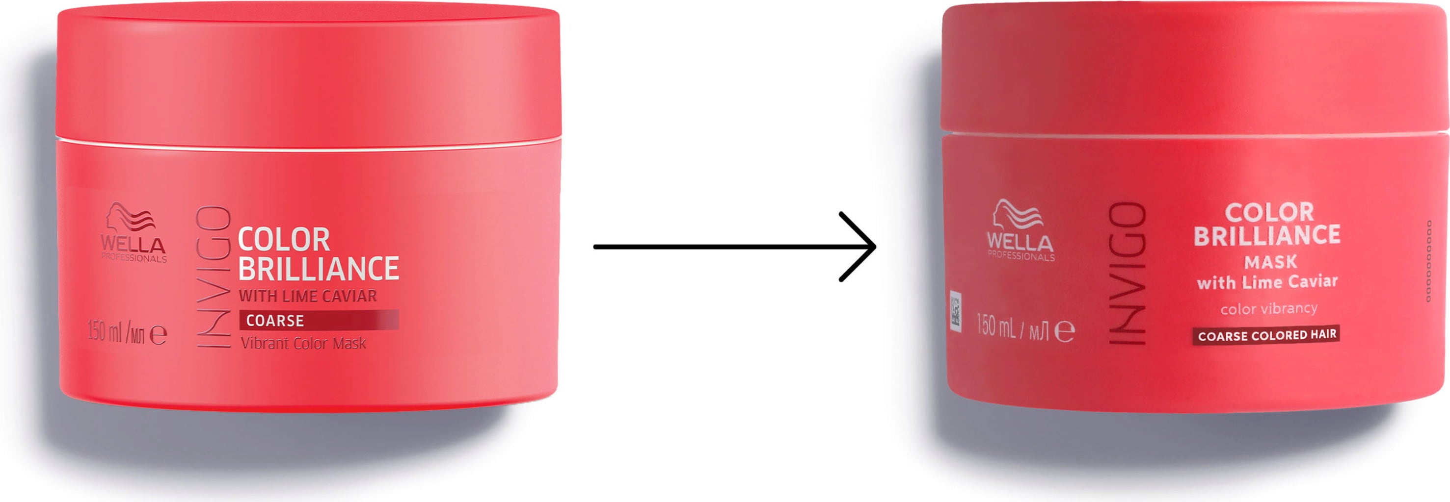 Invigo Color Brilliance Vibrant Colour Mask Coarse Wella Professionals je maska za ohranjanje barve, ki intenzivno neguje barvane, močne lase. Na ta način doseže izboljšano površino las in povečan sijaj barve. Pri tem pomaga tehnologija Anti-Oxidant Shield Technology, ki nadzoruje proces oksidacije po obarvanju z limetinim kaviarjem, molekulami, ki vežejo baker, histidinom in vitaminom E. Poleg učinkovite kombinacije inovativnih in zaščitnih sestavin maska očara z vonjem po osvežujočih citrusnih notah ter lesnim, mehkim in toplim podtonom.