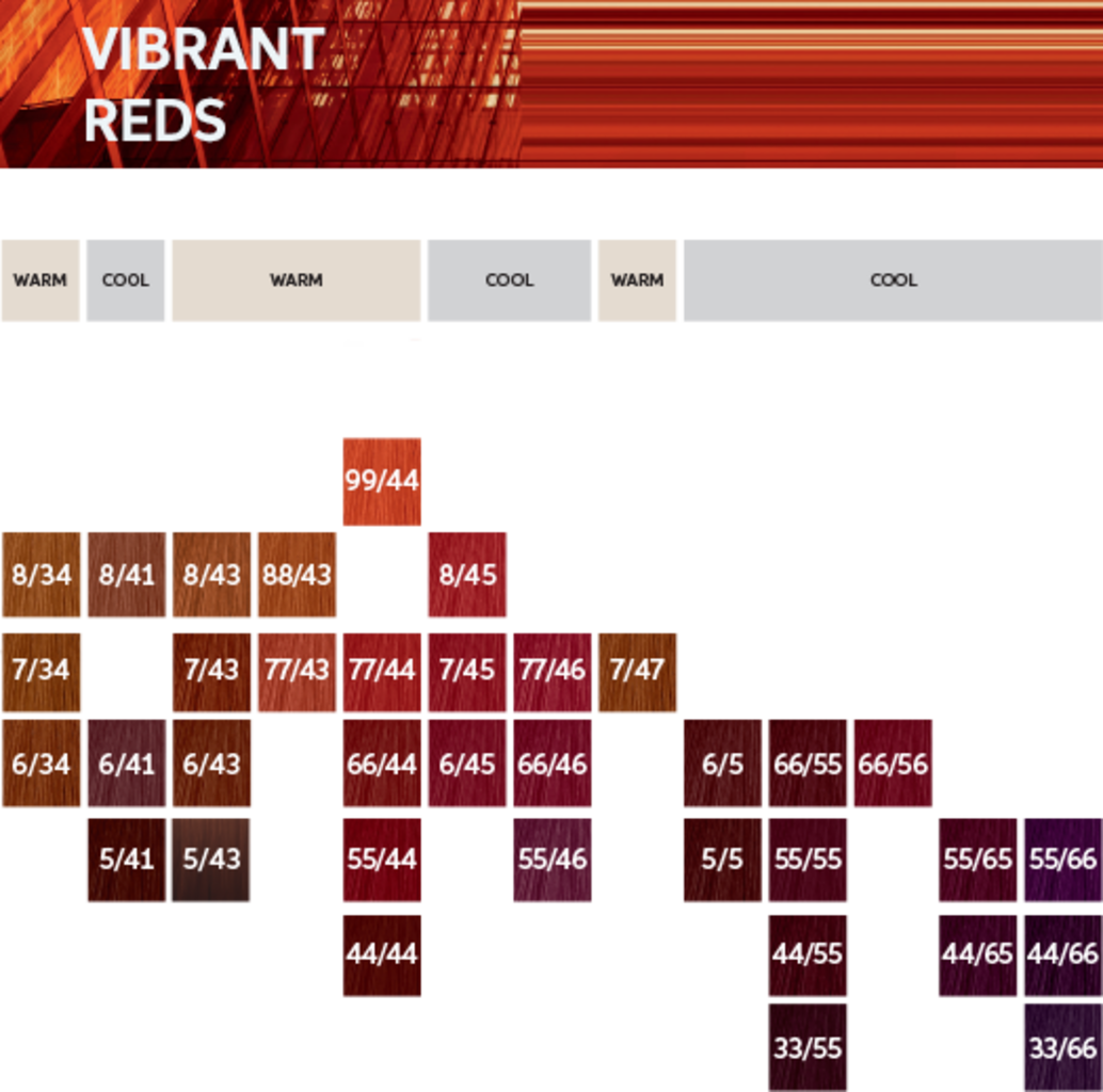 Koleston Perfect Me+ Vibrant Reds Wella Professionals je obstojna barva za lase, ki v laseh pričara enakomerne in intenzivne rdeče odtenke. Poleg tega ponuja do 100% pokritost sivine. Zahvaljujoč tehnologiji ME+ je nanos nežen in zmanjšuje verjetnost alergij. Uživajte v svetlečih rdečih tonih.