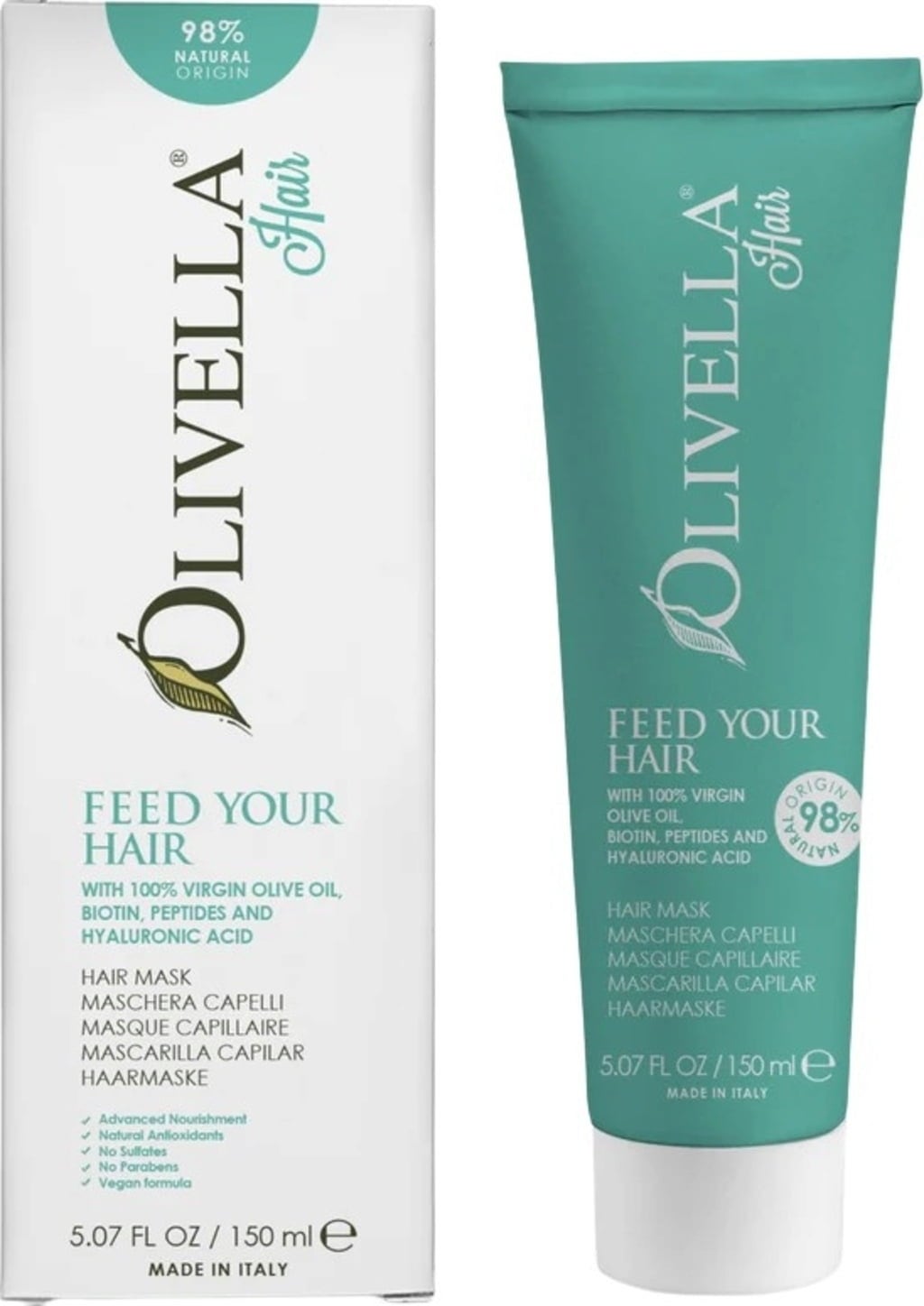 Maska za lase z deviškim oljčnim oljem Olivella vašim lasem nudi intenzivno nego. Njena veganska formulacija združuje oljčno olje z biotinom, peptidi in hialuronsko kislino ter nežno neguje in krepi dolžine in konice las. Tekstura se zlahka razporedi ter zagotavlja opazno prožnost in sijaj - idealna za suhe, kemično obdelane ali krhke lase.
