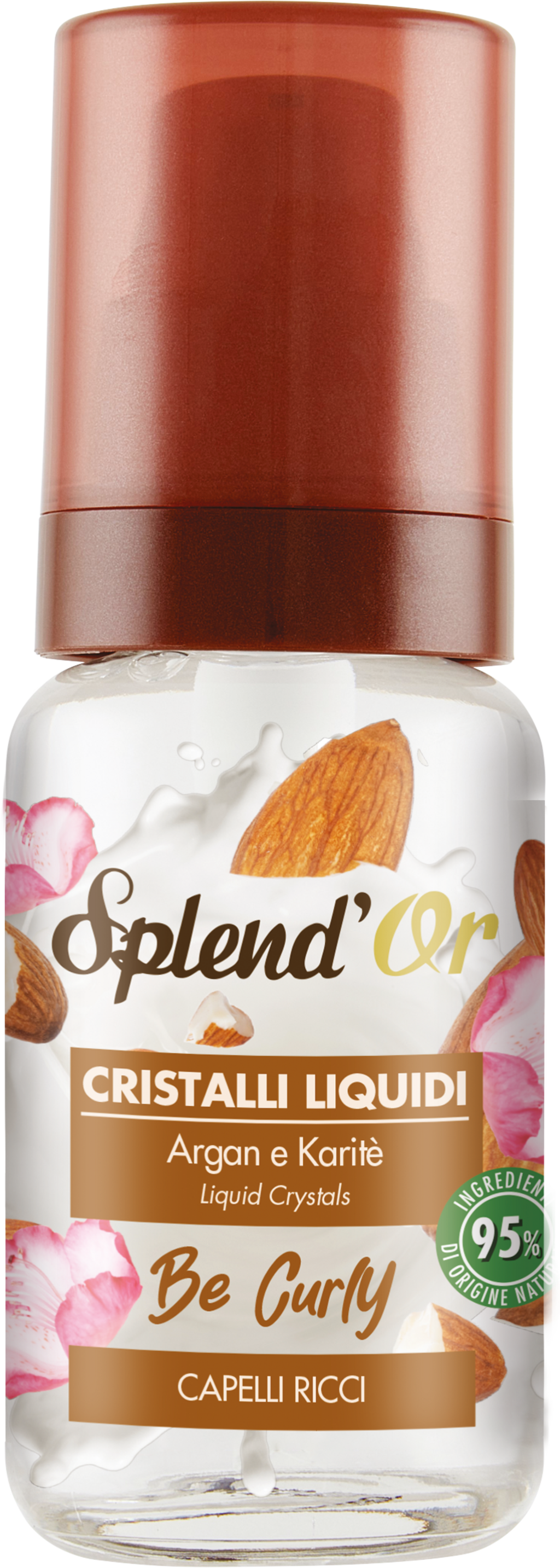 Tekoči kristali Be Curly znamke Splend'Or delujejo kot balzam za razvozlavanje kodrastih las in takoj zmehčajo lasno strukturo. Arganovo olje, mandljevo olje in karitejevo maslo nežno negujejo lase, zaradi česar so mehki in enostavni za česanje.