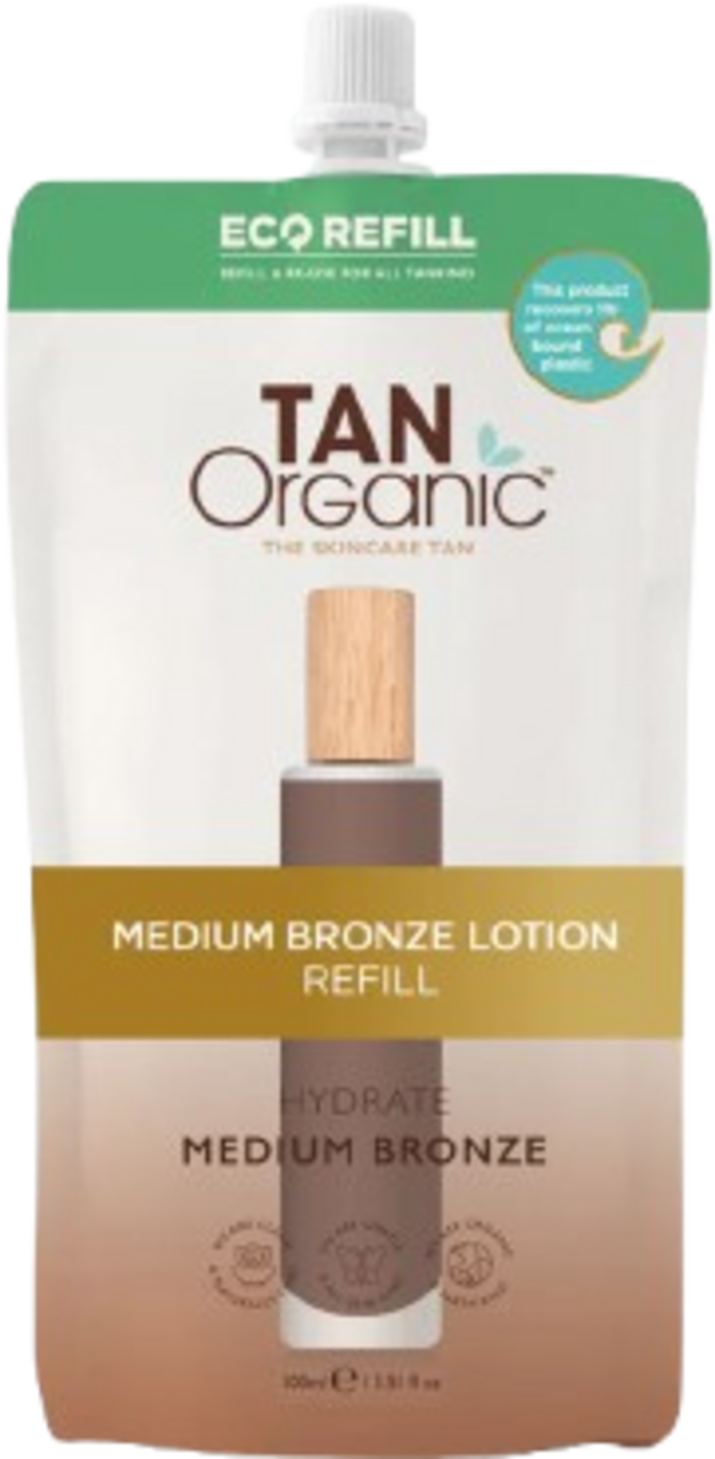 Uživajte v okolju prijaznem načinu polnjenja svojega najljubšega samoporjavitvenega sredstva. Z vrečko za ponovno polnjenje znamke Tan Organic lahko ponovno napolnite stekleničko, jo ponovno uporabite in tako zmanjšate količino plastičnih odpadkov. Vsaka vrečka za ponovno polnjenje vsebuje ekvivalent dveh stekleničk losjona za samoporjavitev za dolgotrajen in trajnosten sijaj. Formula vsebuje 84 % soka aloe vere, ki intenzivno vlaži kožo in jo naredi navlaženo ter negovano. Rezultat je naraven, enakomeren bronast odtenek brez neprijetnih vonjav, razbarvanja ali suhih lis.