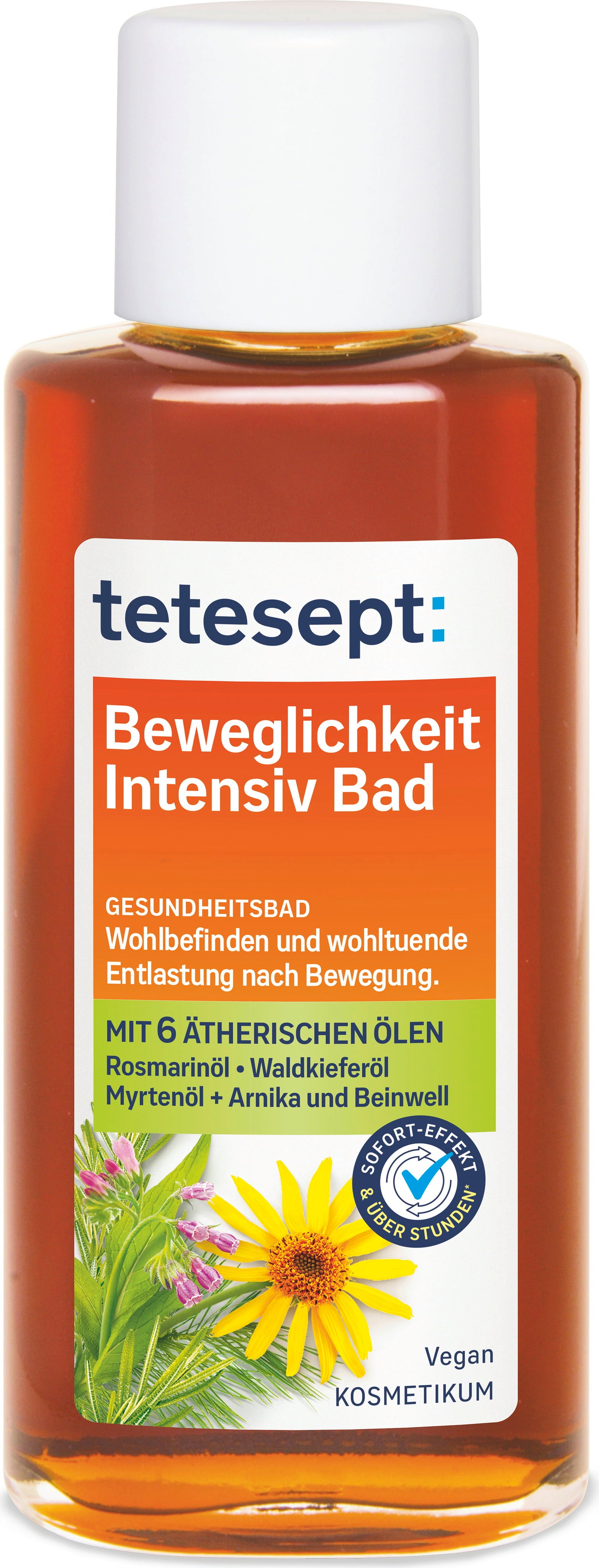 Dolg, naporen dan, šport, pohodništvo ali fizično delo lahko vplivajo na celotno telo. Z intenzivno kopeljo znamke tetesept lahko svojemu telesu namenite posebno pozornost po napornem delovnem dnevu; po potrebi jo lahko uporabljate tudi vsak dan. Naravna eterična olja rožmarina, iglic bora, evkaliptusa in ingverja dopolnjujejo izvlečki arnike in gabeza, ki vašo kad spremenijo v idealen kraj za sprostitev!
