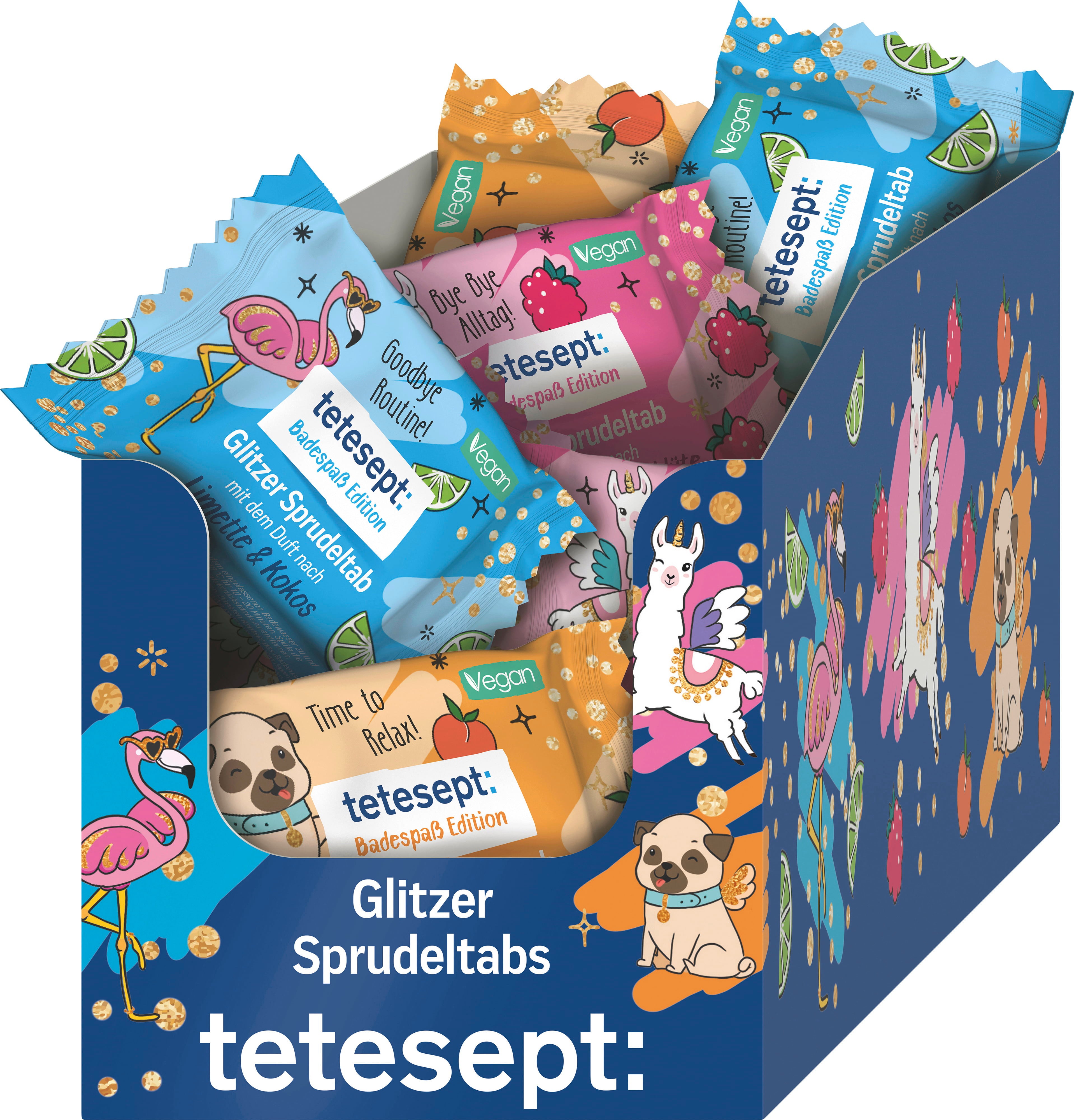 Ste naveličani dolgočasnih kopeli? Privoščite si penečo kopel z bleščicami znamke tetesept in spremenite svojo kad v penečo oazo! Peneča kopel je veganska in brez mikroplastike, zato se lahko veselite brezskrbne zabavne kopel!