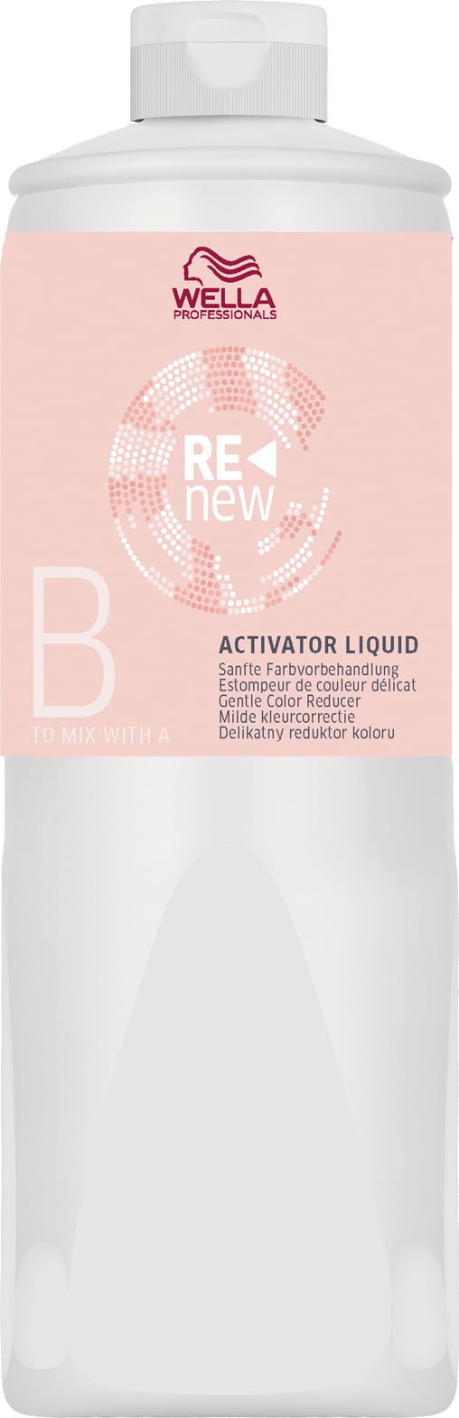 Colour Renew Activator Liquid Wella Professionals je tekoči reduktor barve, ki v kombinaciji s Color Renew Powder nežno odstrani obstojne barve las in nianse z las. Tako so optimalno pripravljeni na novo barvo las. Naravni ton ni posvetljen, tako da lasje niso po nepotrebnem obremenjeni in poškodovani. Formula brez dišav z vitaminom C in citronsko kislino nežno deoksidira barvne molekule in tako ščiti melanin v laseh. S tem zaščitite lase in jih osvobodite barvnih pigmentov. Po želji lahko nova barva zdaj zasije.