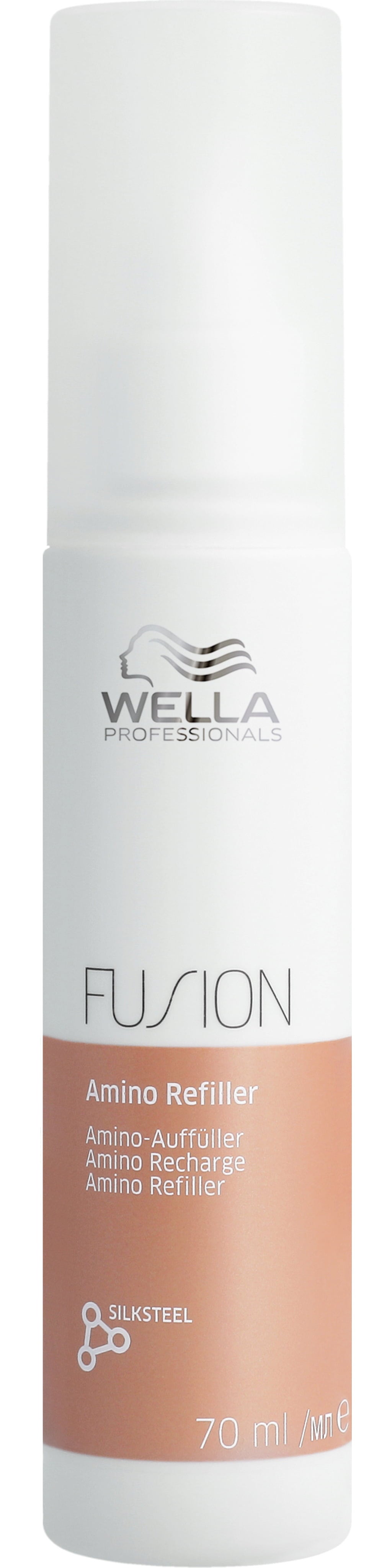 Wella Professionals Fusion Amino Refiller vsebuje svilene aminokisline, ki delujejo globoko v laseh. Lasje se okrepijo in obremenjena lasna vlakna se popravijo tako, da se zapolnijo poškodovana področja. Na ta način se lahko poškodovane lasne strukture regenerirajo in lasje so tako dolgotrajno zaščiteni pred lomljenjem.