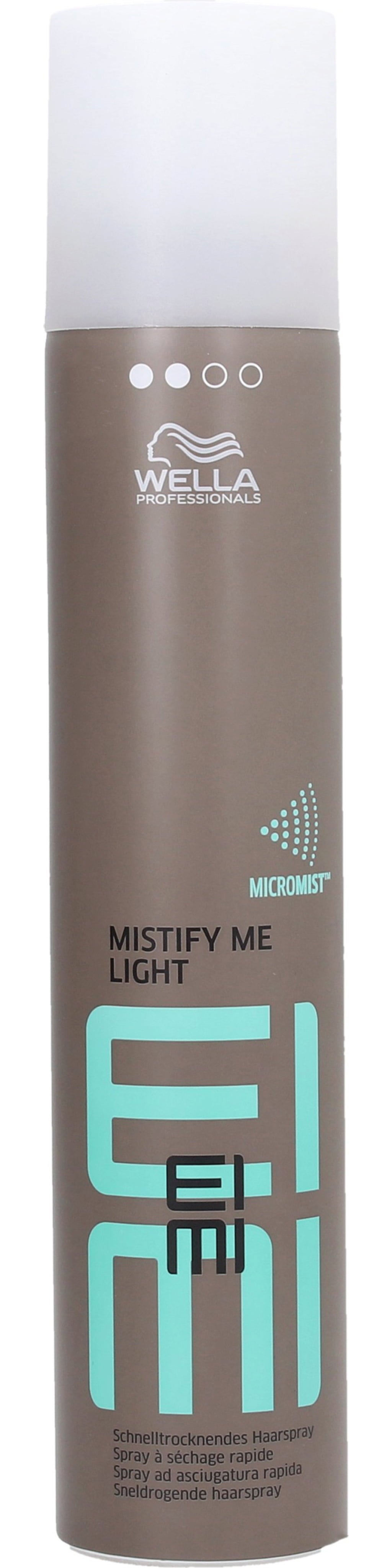 Wella EIMI Mistify me Light hitro suši lase s stopnjo oprijema 2 od 4. Tehnologija MICROMIST podpira lase in daje stilu takojšen oprijem. Izjemno fino pršilo za do 24 ur delovanja.