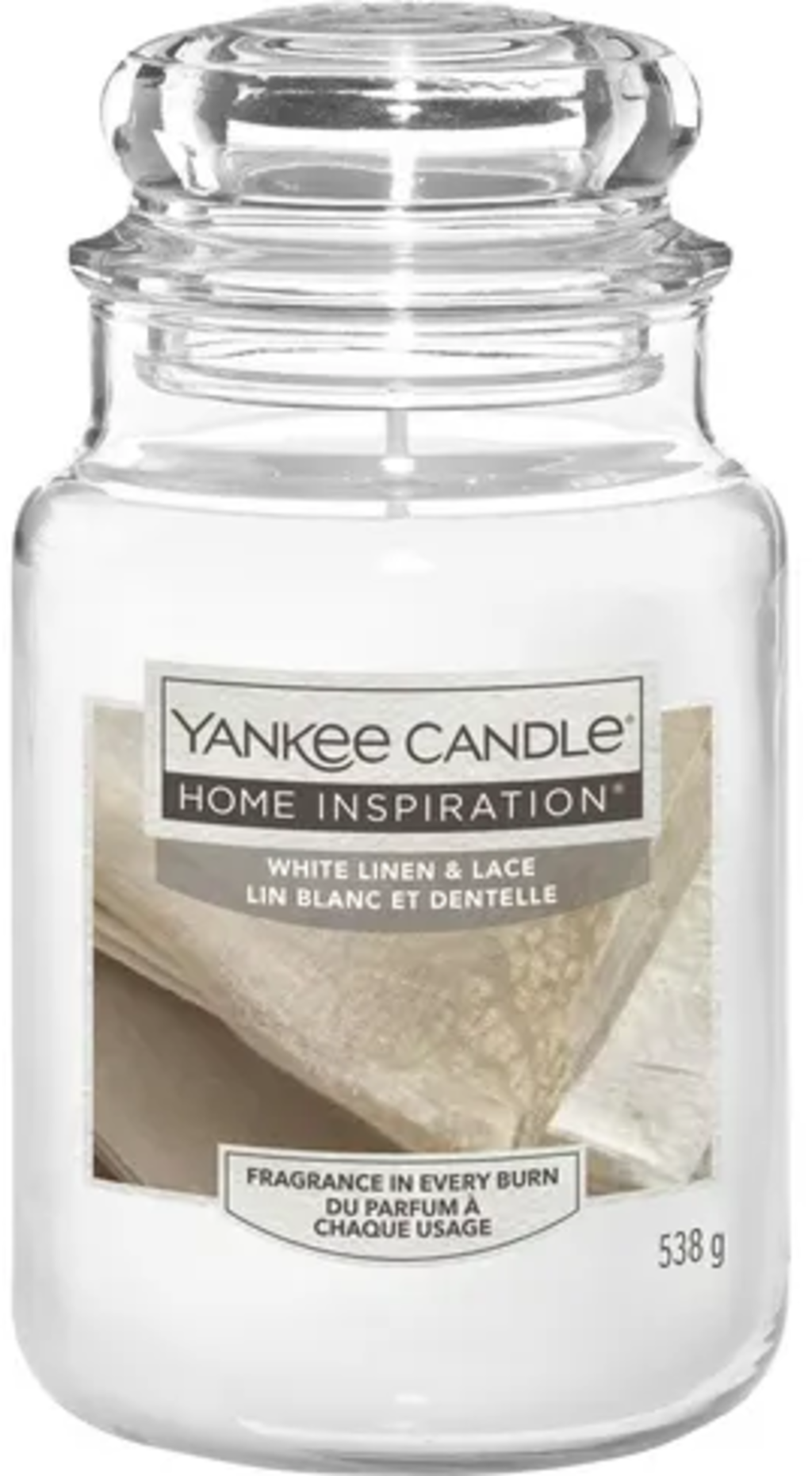 Yankee Candle Home Inspiration sveča v kozarcu White Linen & Lace, Large