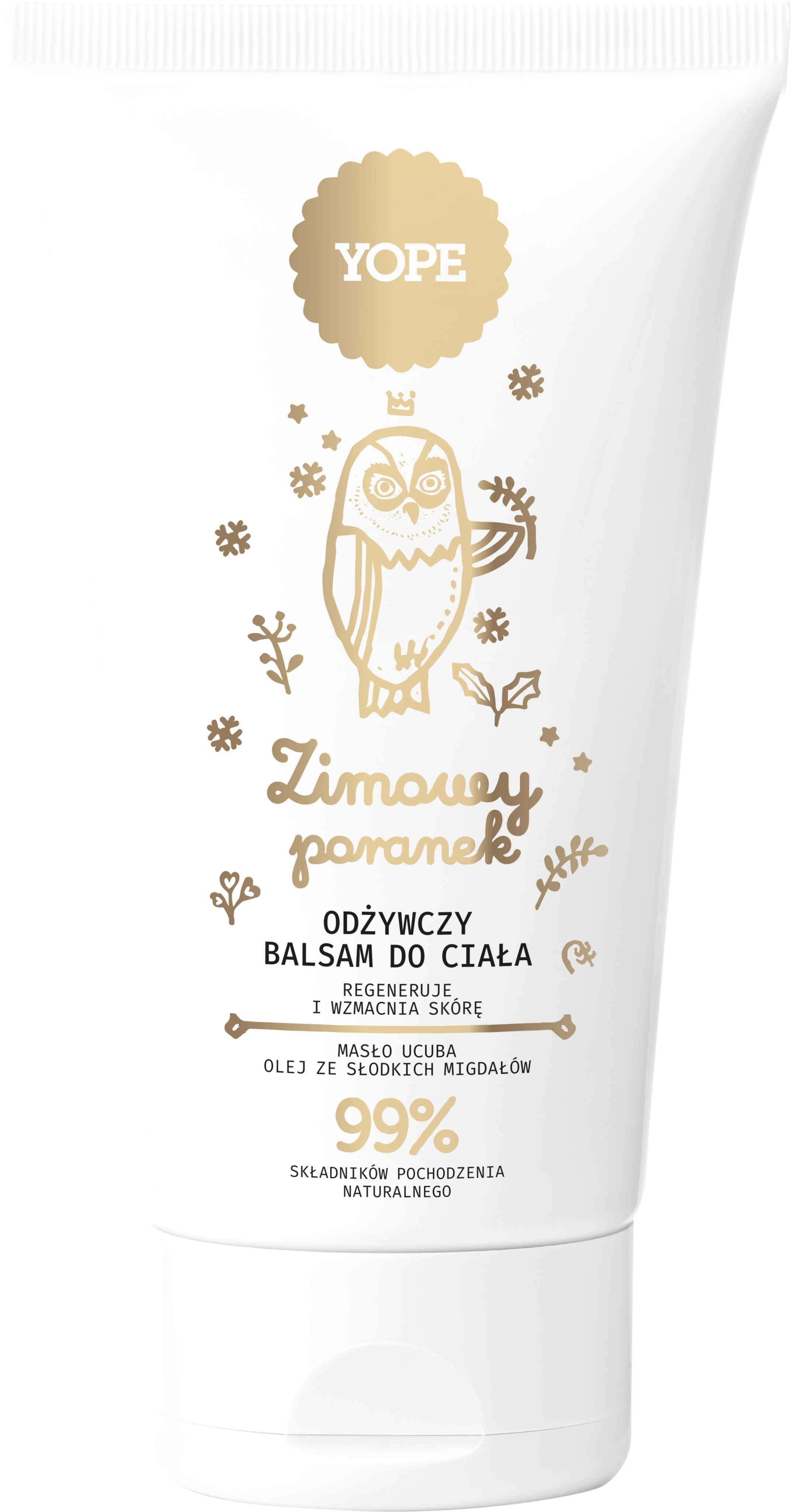 Razvajajte svojo kožo in čute z losjonom za telo Winter Morning znamke YOPE! Mandljevo olje, ovseno mleko, maslo cupuaçu in karitejevo maslo intenzivno negujejo kožo, nežen zimski vonj vanilije in vijolice pa vas spremlja skozi ves dan.